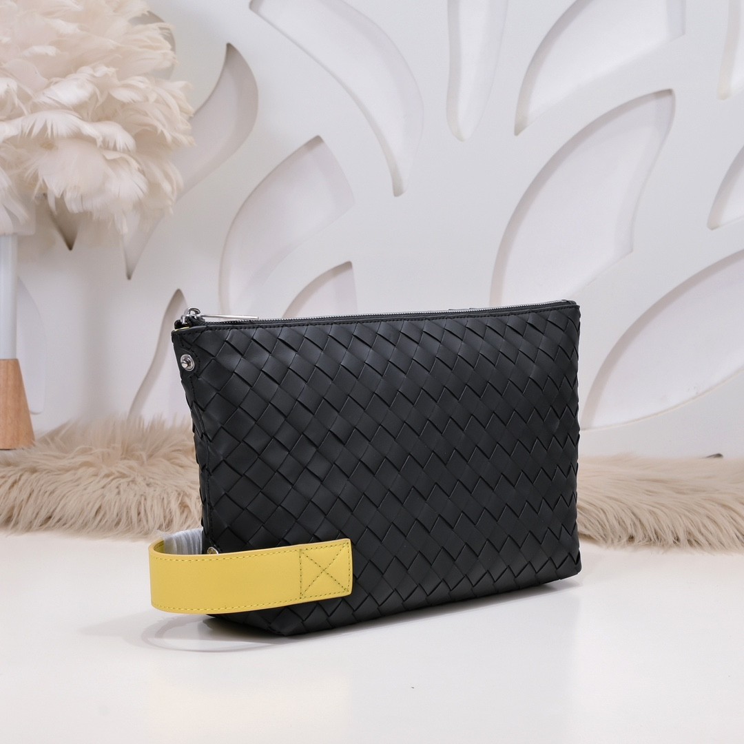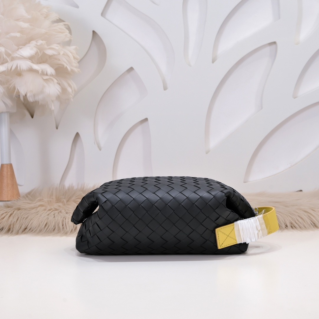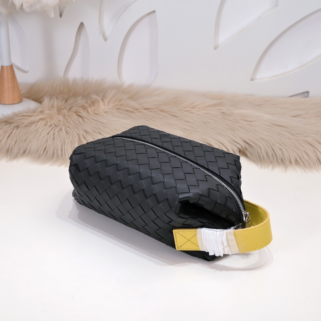 【BOTTEGA VENETA 寶緹嘉】Intrecciato 拼色洗漱包|黑編織 × 檸檬黃內裡 × 義式精品風