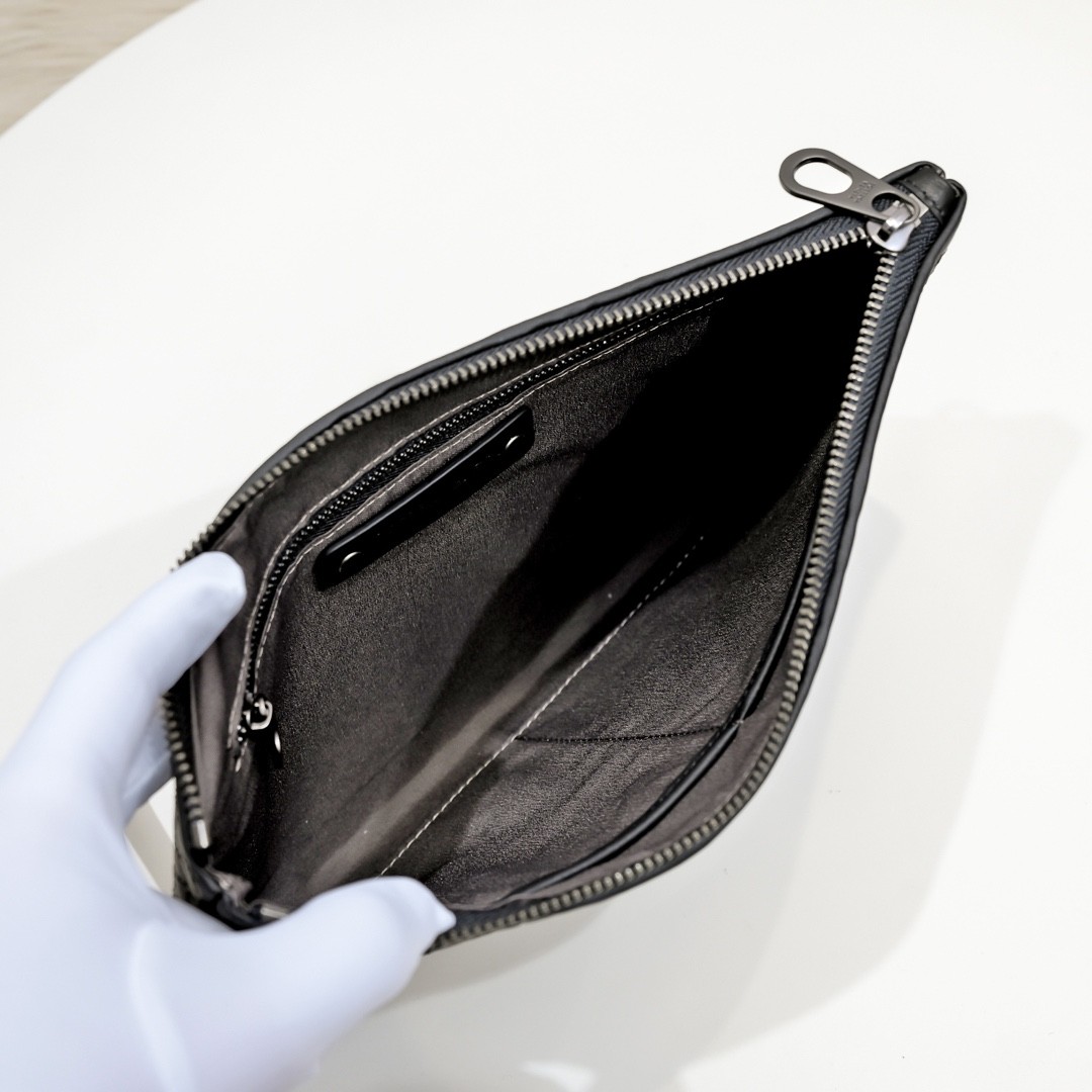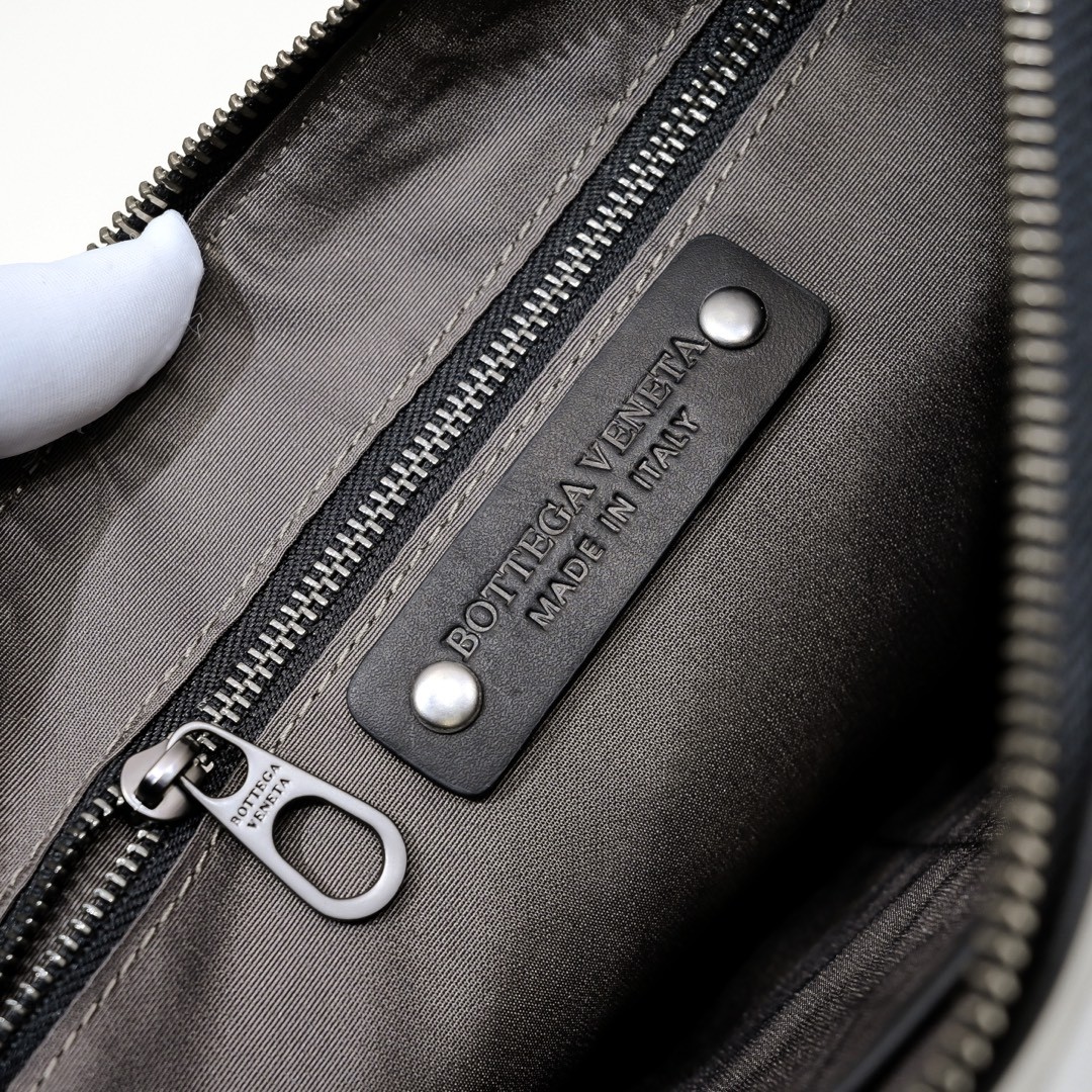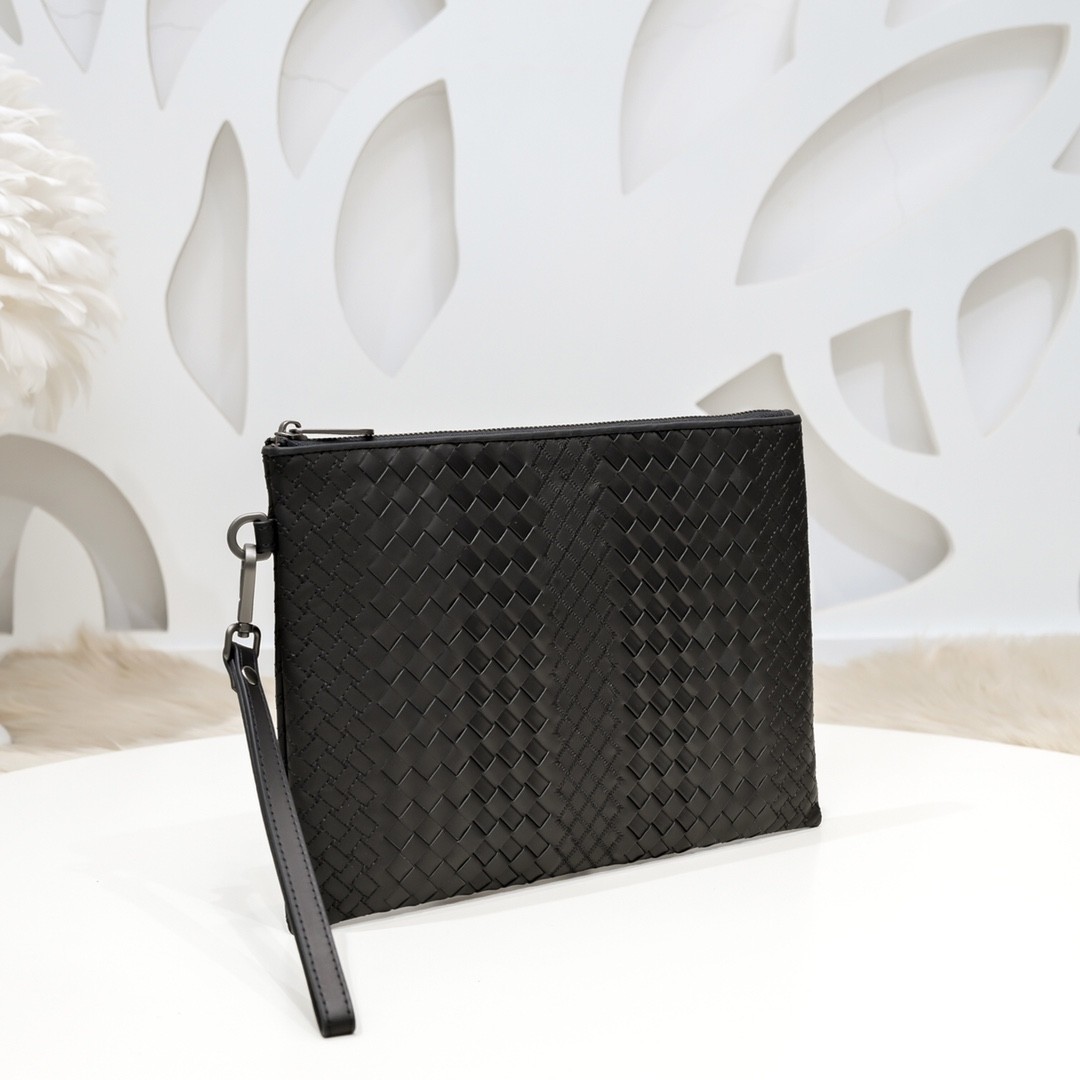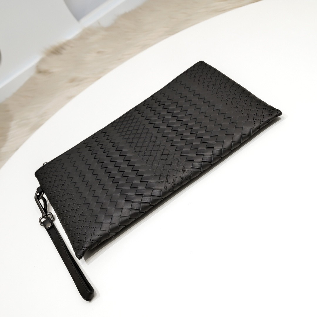 【BOTTEGA VENETA 寶緹嘉】Intrecciato 幾何刺繡手拿包|黑色編織 × 精緻格紋線繡 × 都會精品
