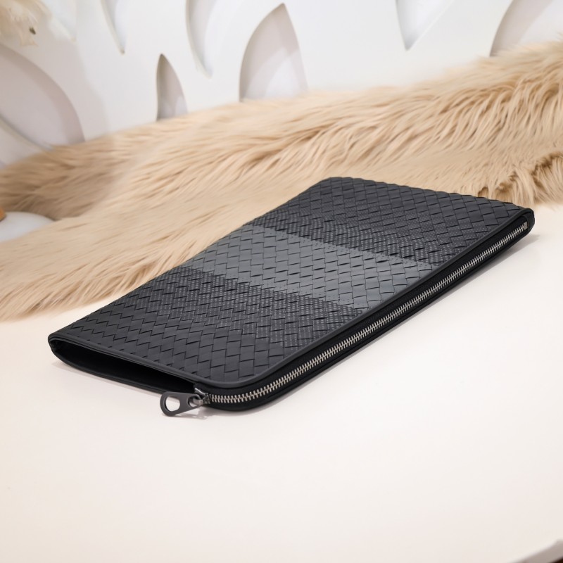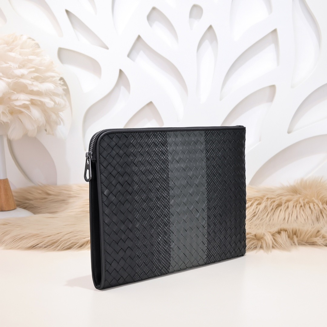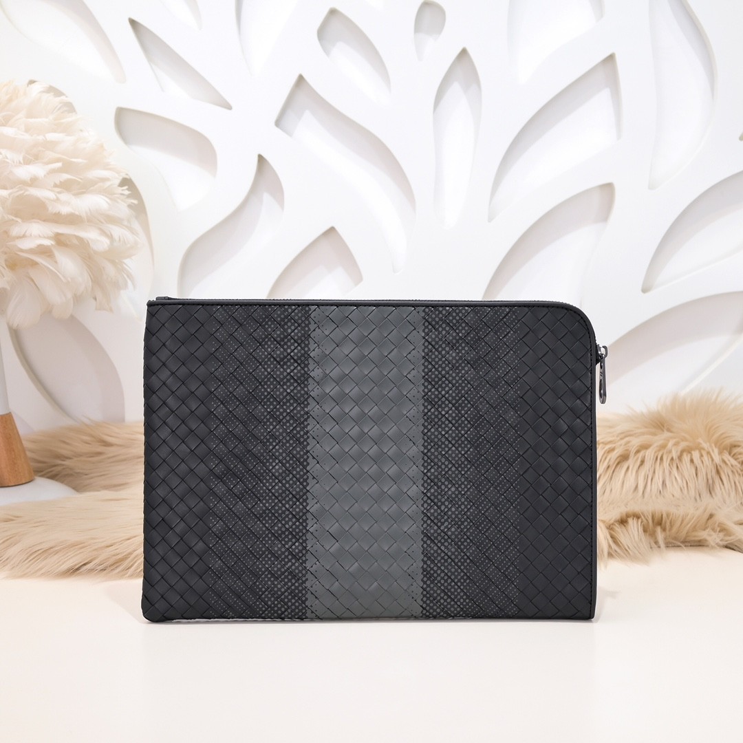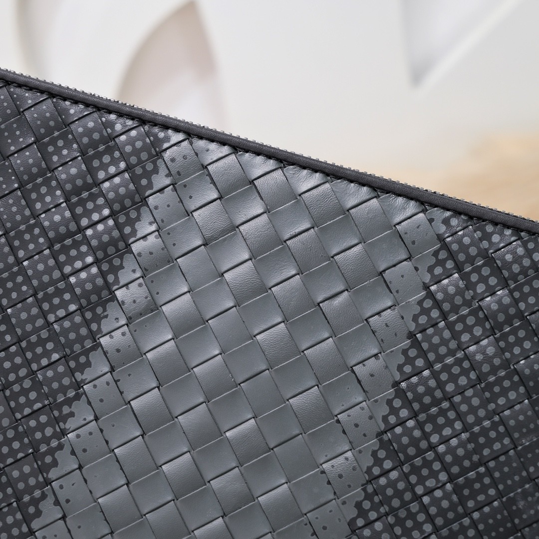 【BOTTEGA VENETA 寶緹嘉】Intrecciato 灰黑漸層手拿包|霧面拼色 × 編織皮革 × 義式極簡風