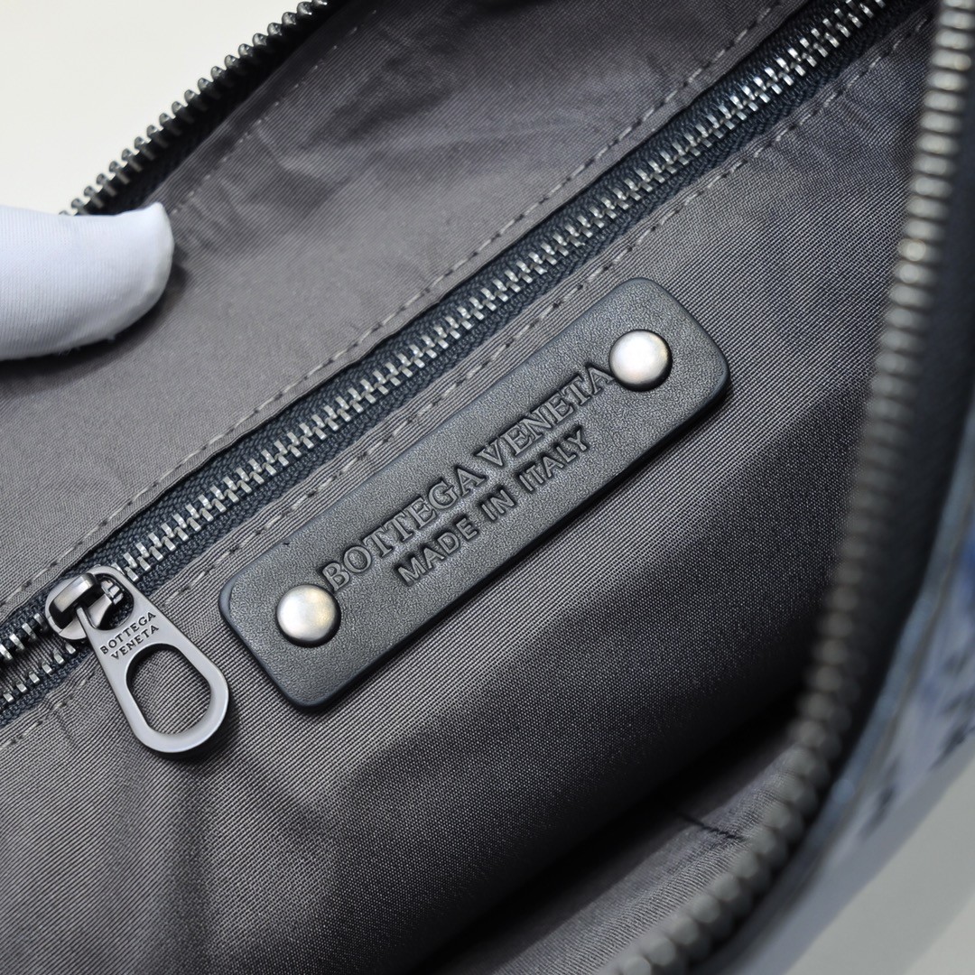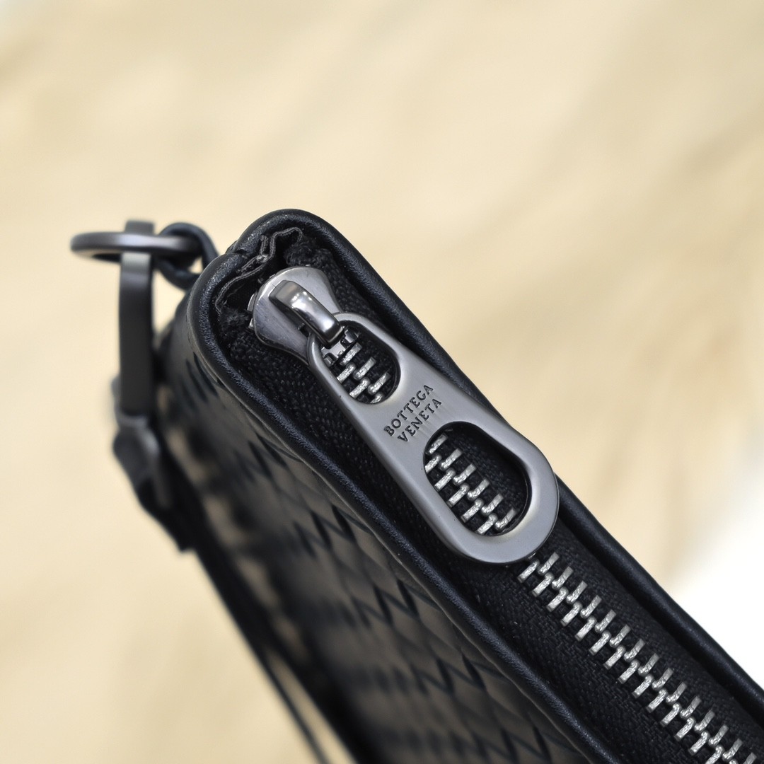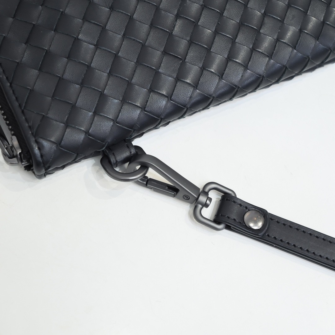 【BOTTEGA VENETA 寶緹嘉】Intrecciato 音波藍黑手拿包|立體編織 × 聲紋中線 × 義式極簡工藝