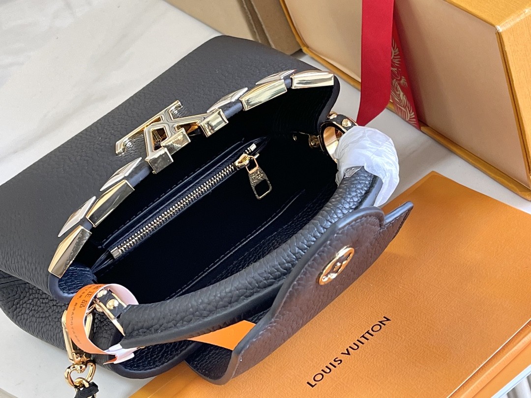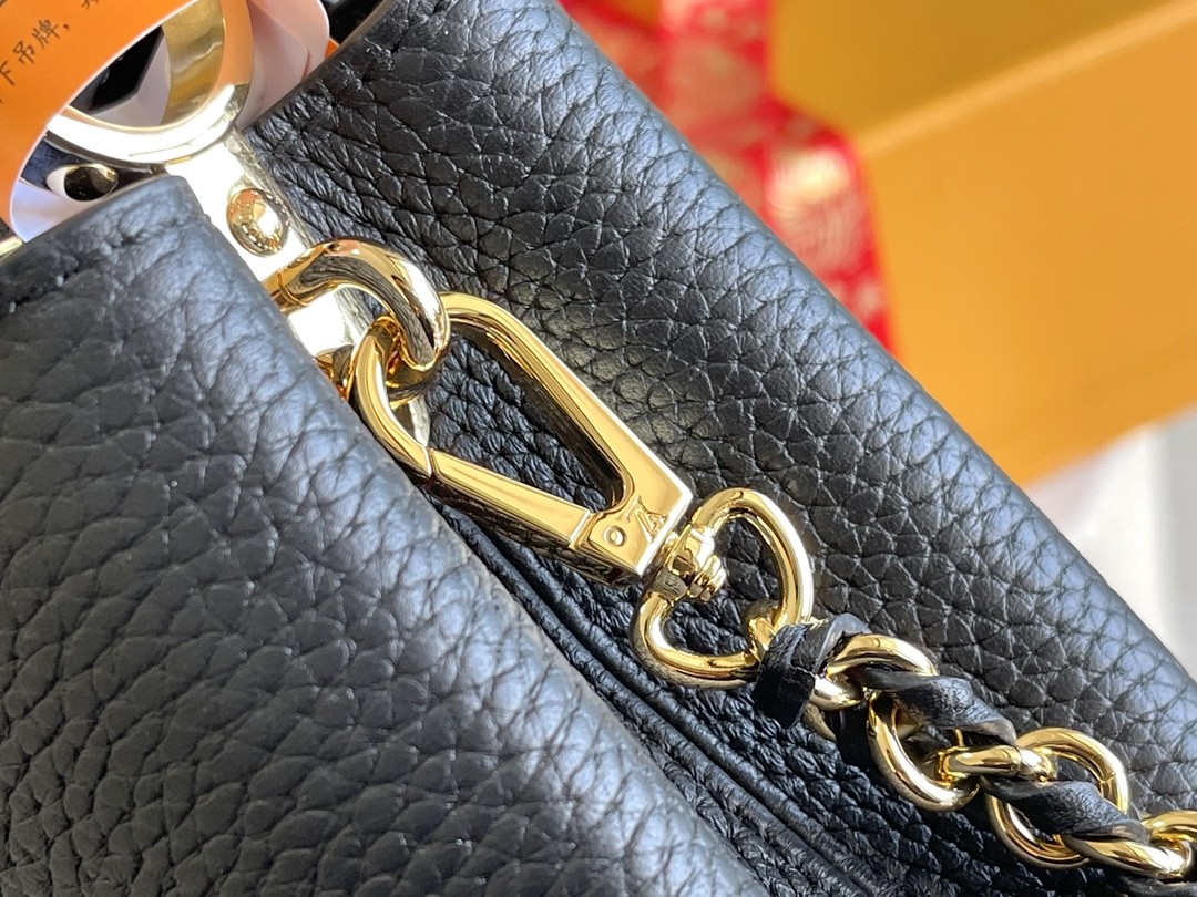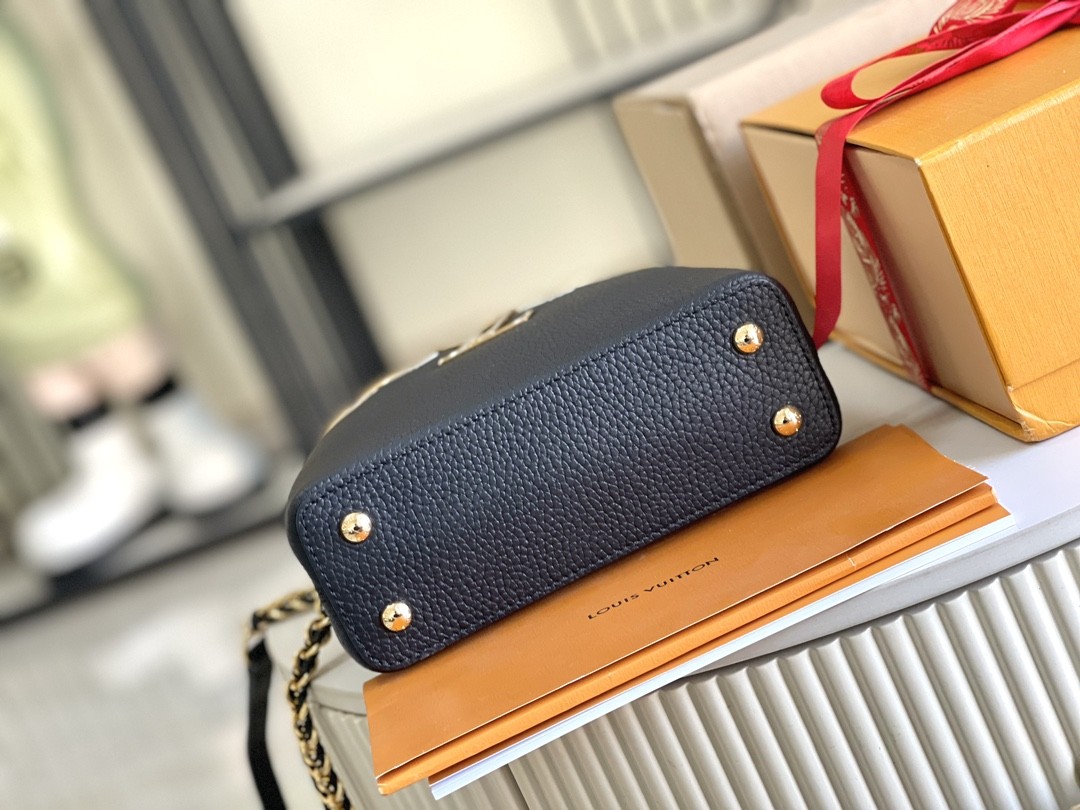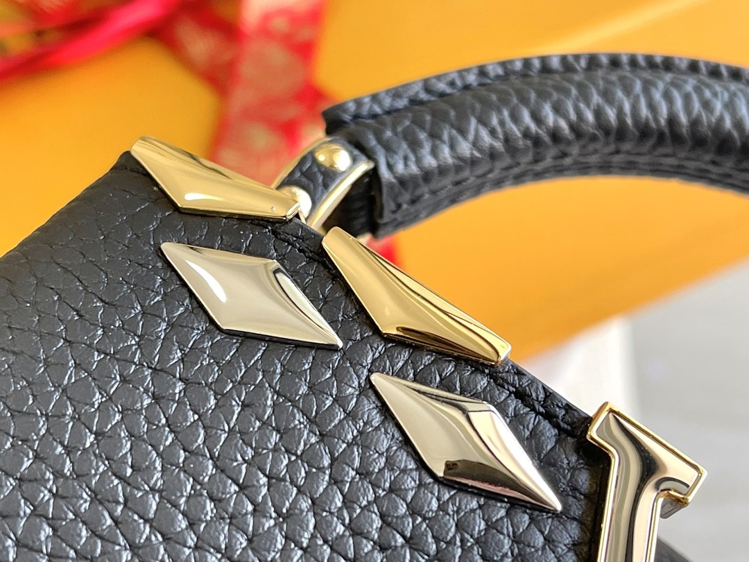 花冠五金 Capucines Mini 迷你款,皮革包身的顶部邊緣環繞花朵,恰如經典設計