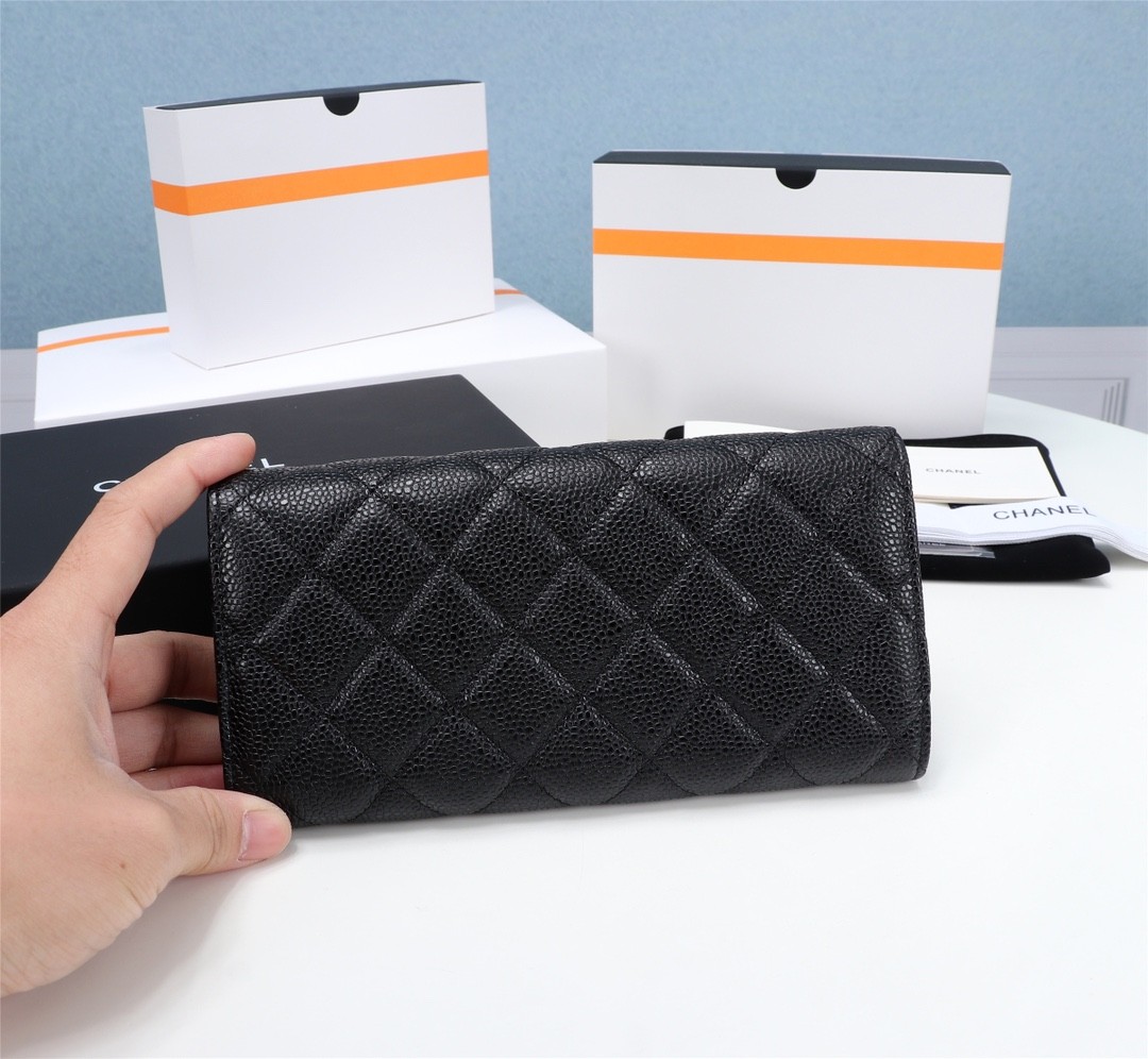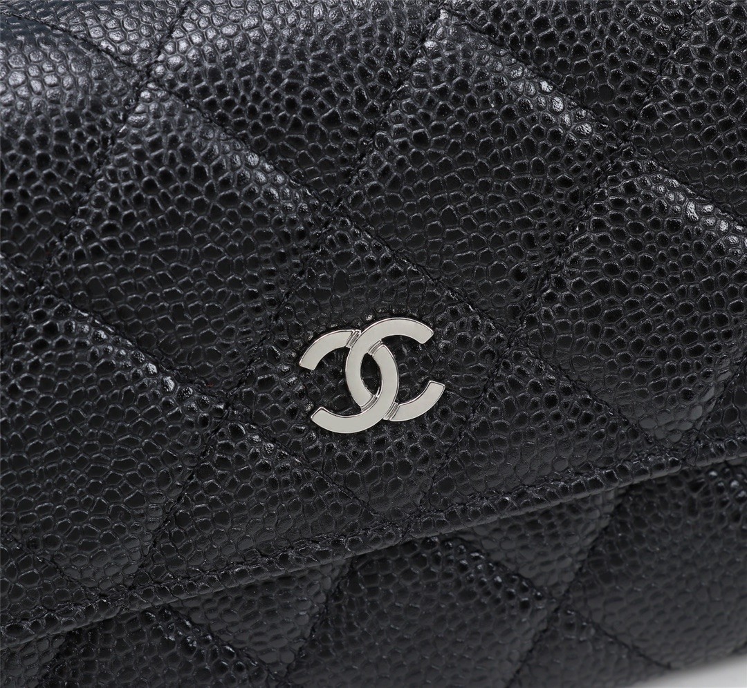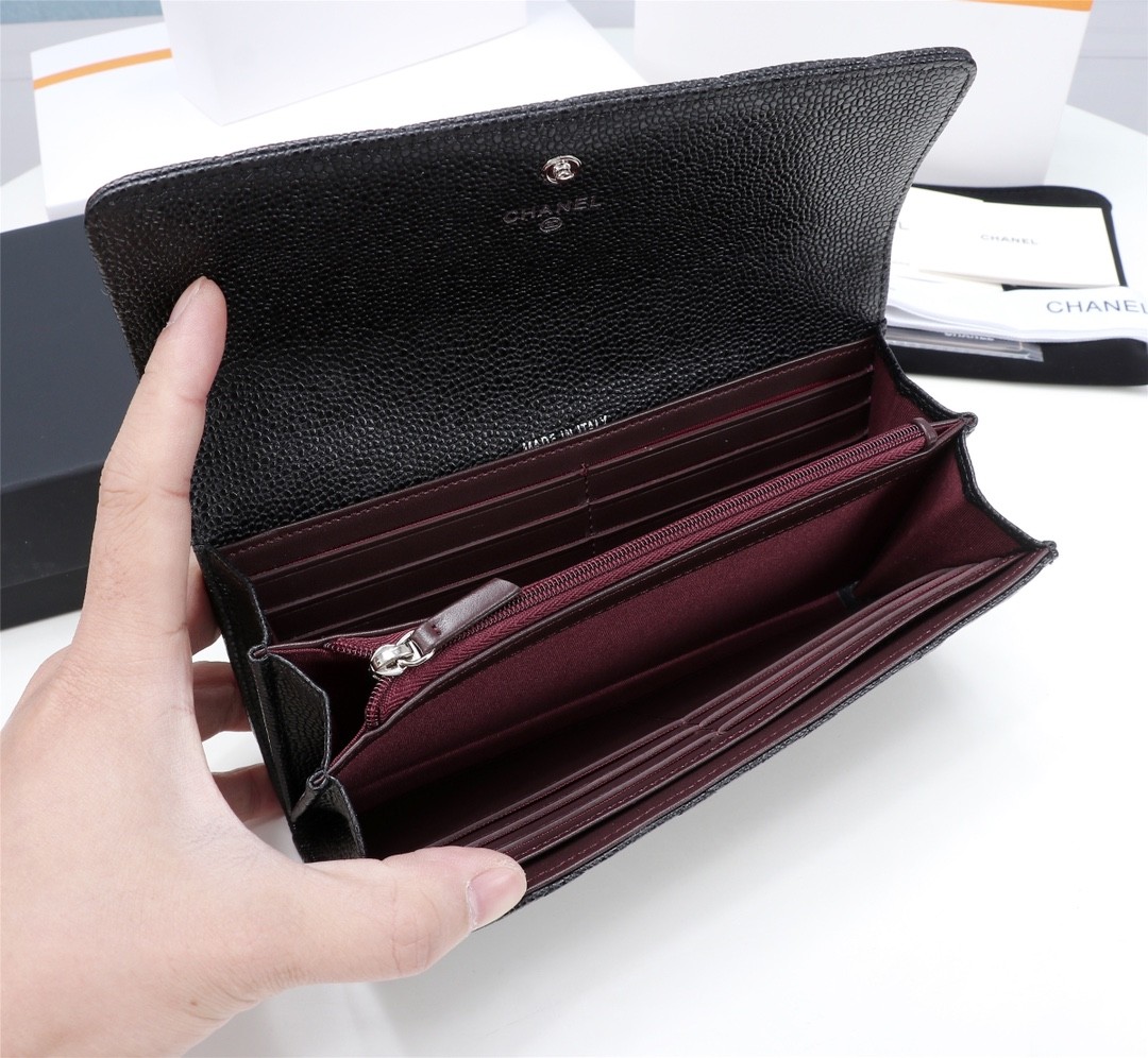 Chanel經典黑色魚子醬皮革長夾
