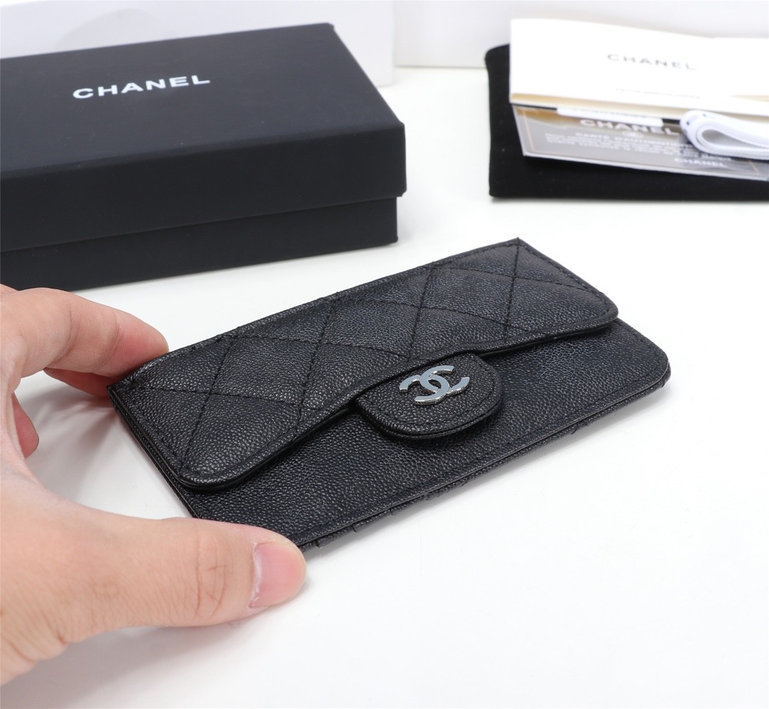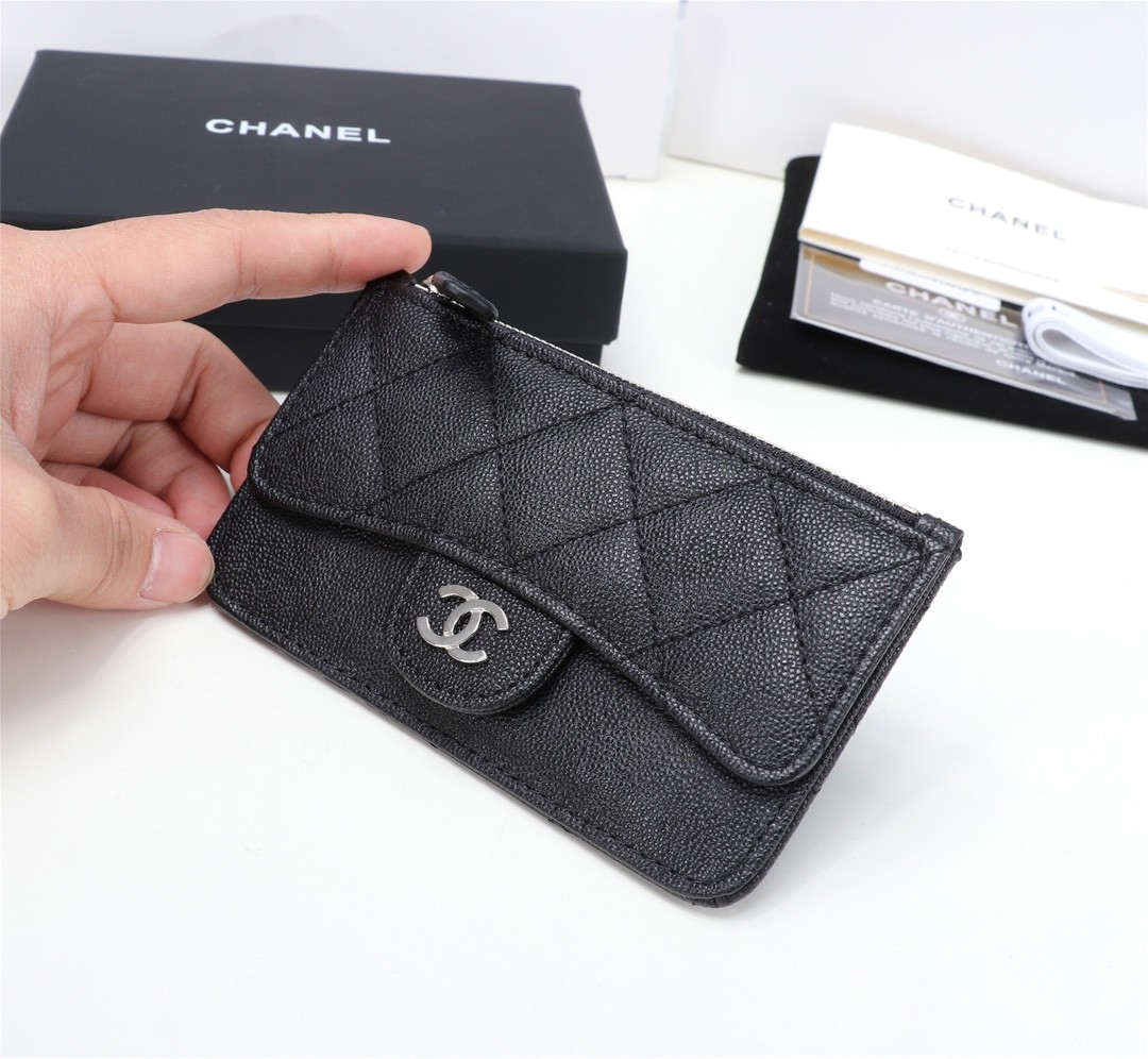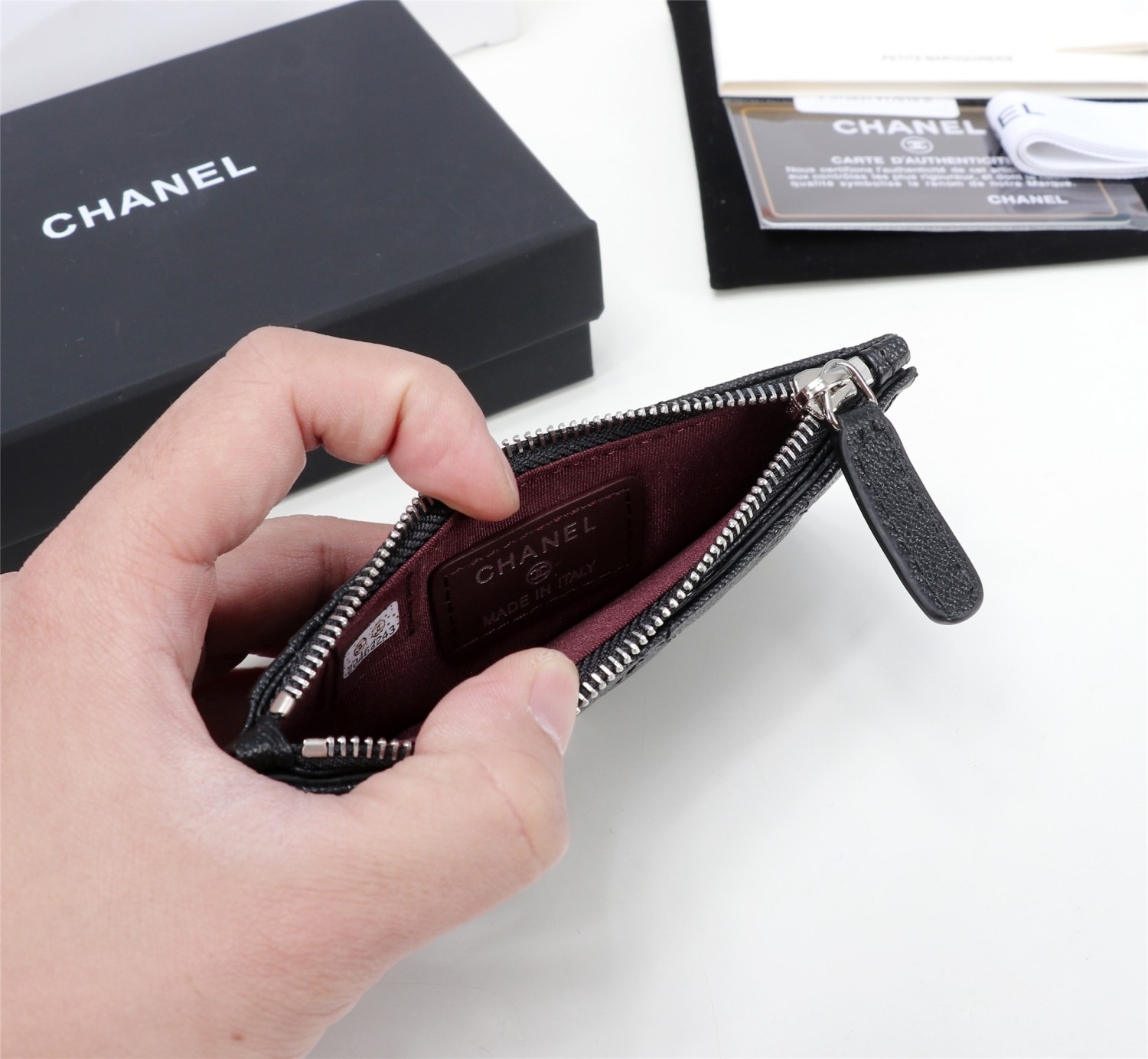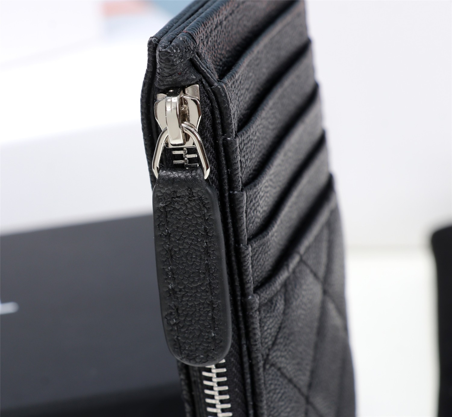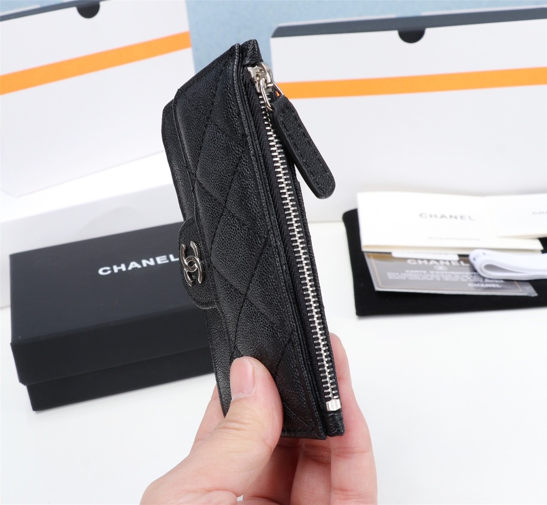 【CHANEL 香奈兒】Classic Zipped Card Holder 菱格拉鍊卡夾(黑銀款)