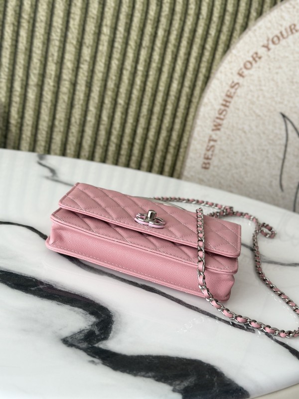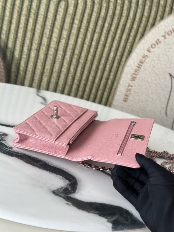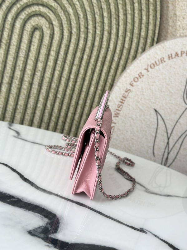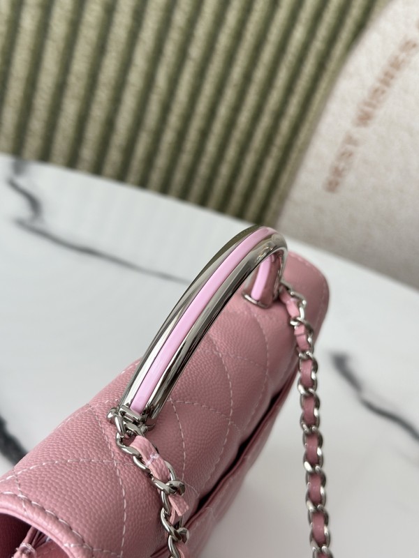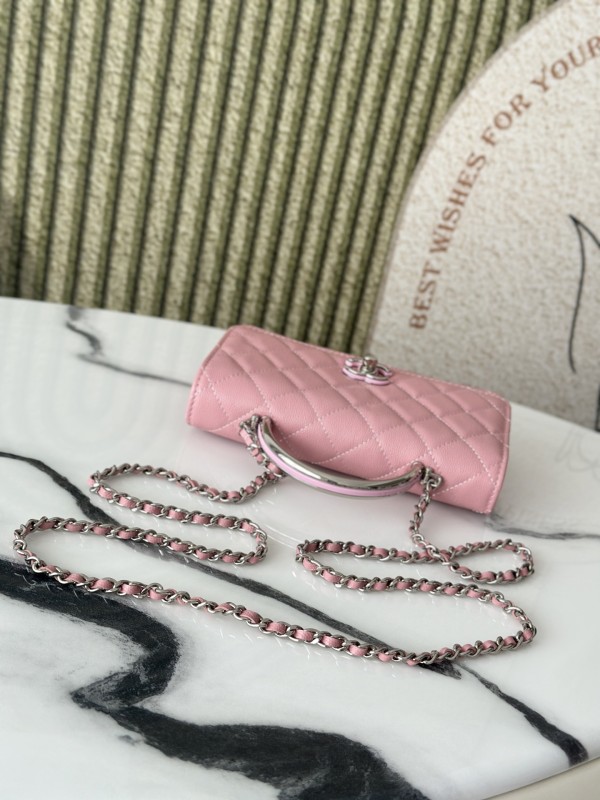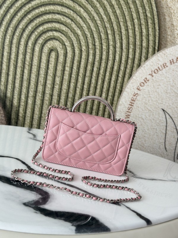 CHANEL 香奈兒 Mini Top Handle Flap 小型菱格紋鏈條包(粉銀款)