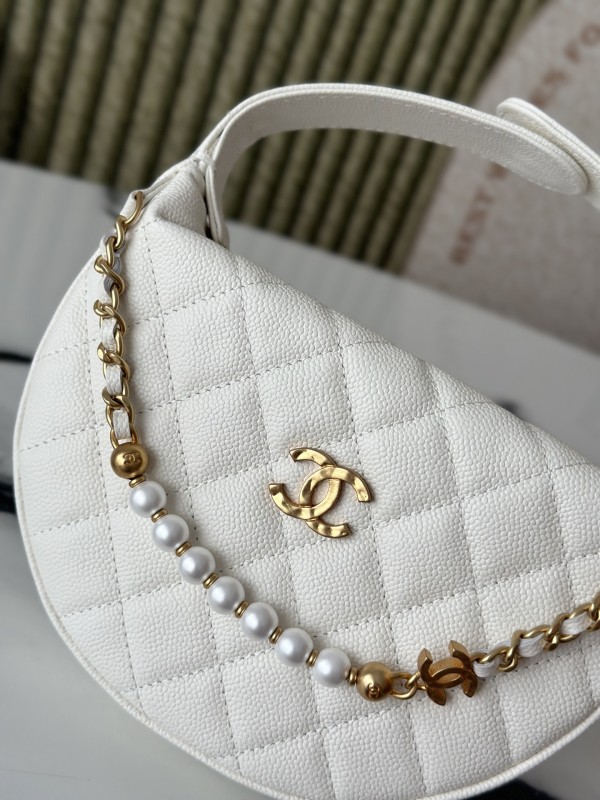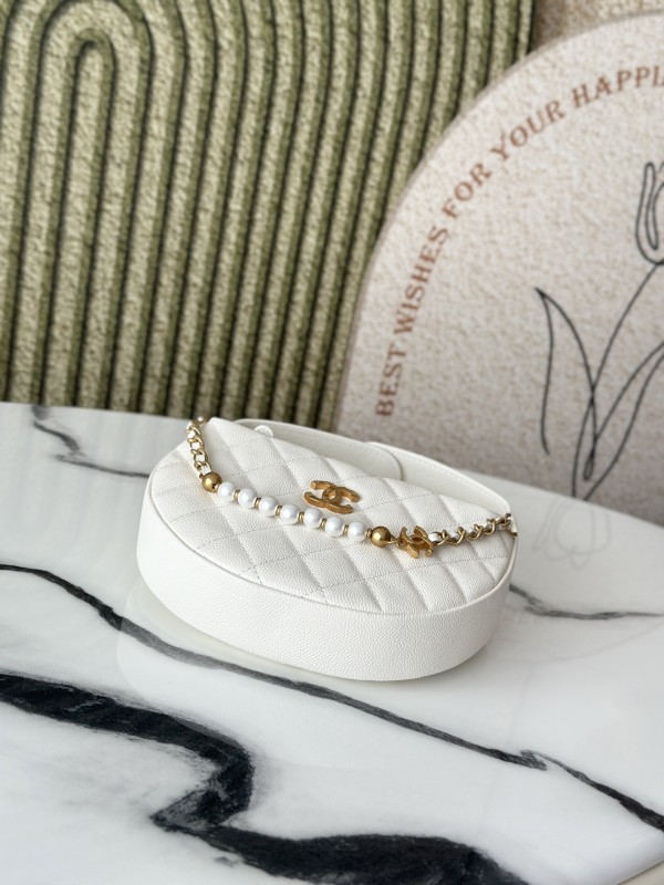 CHANEL 香奈兒 Pearl Crush Half Moon Bag 珍珠半月包(白金款)