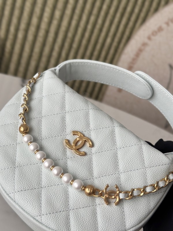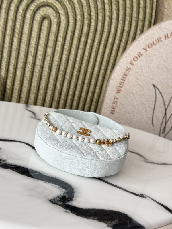 CHANEL 香奈兒 Pearl Crush Half Moon Bag 珍珠半月包(淺藍金款)