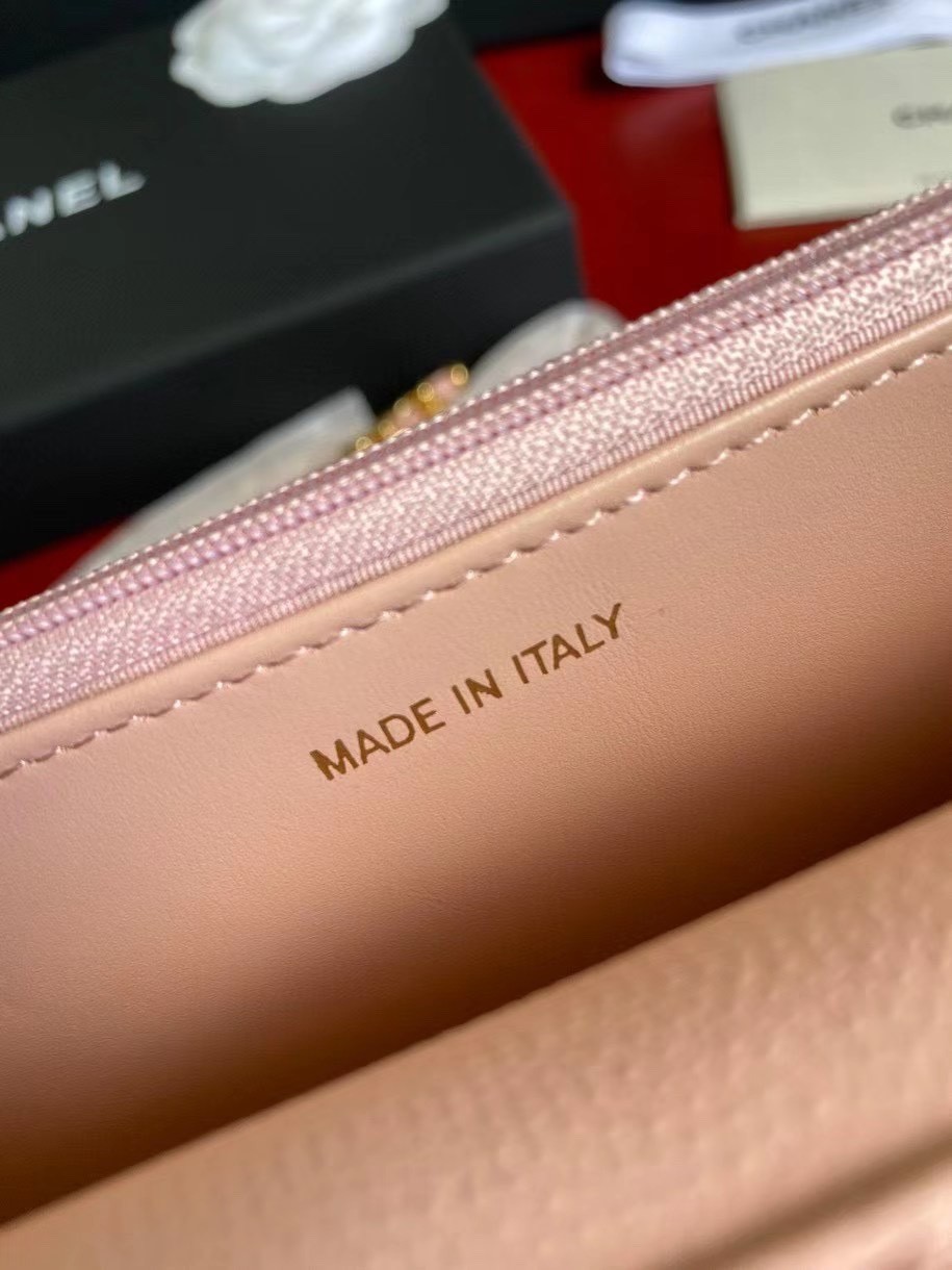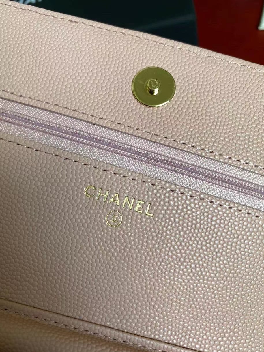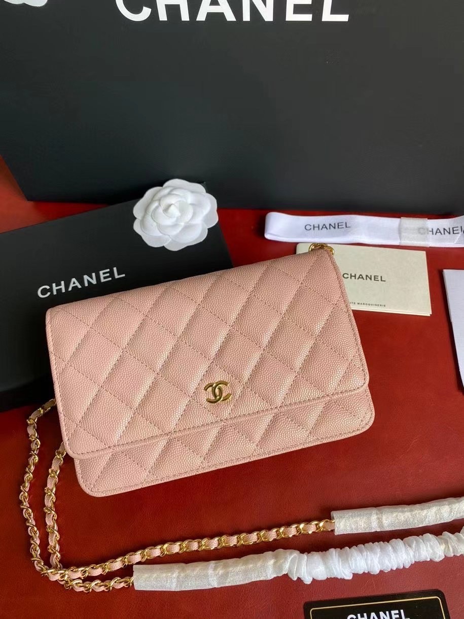 CHANEL經典菱格紋雙C粒面牛皮WOC 粉色