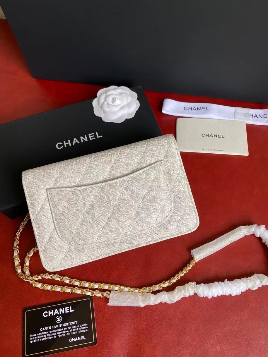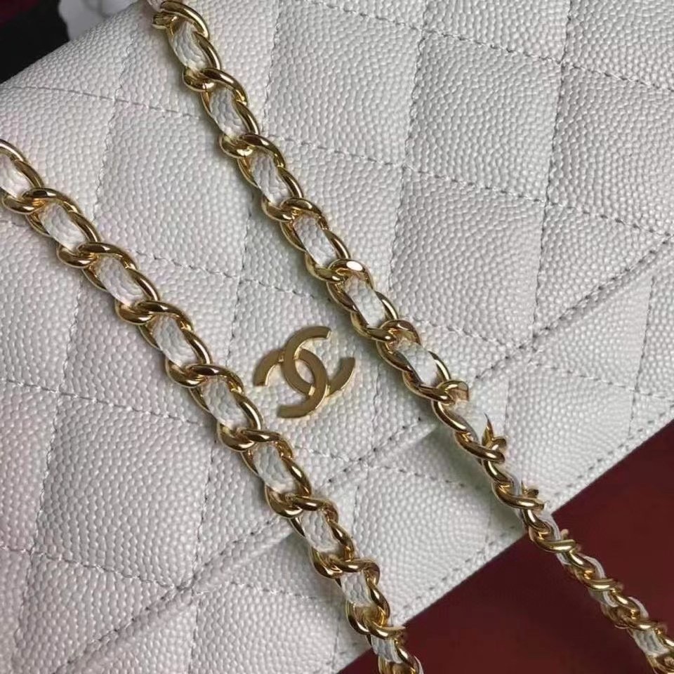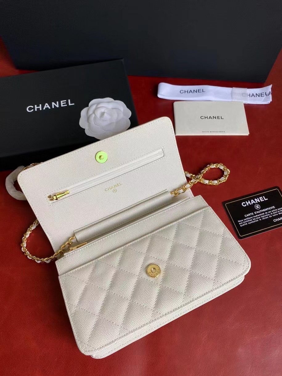CHANEL經典菱格紋雙C粒面牛皮WOC 白色