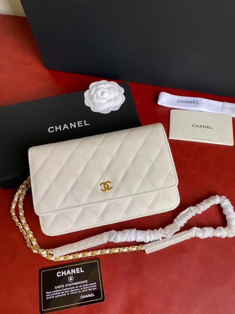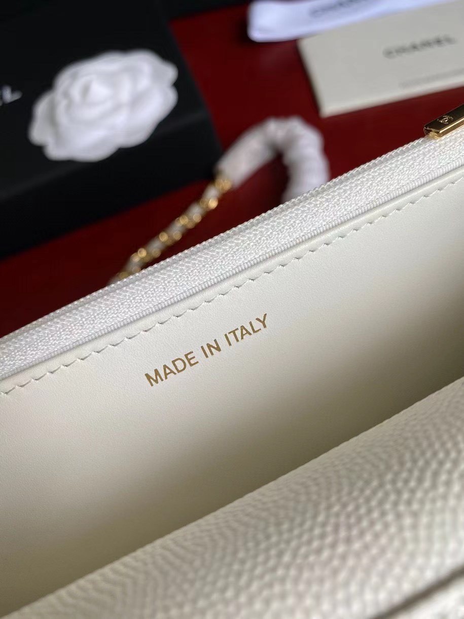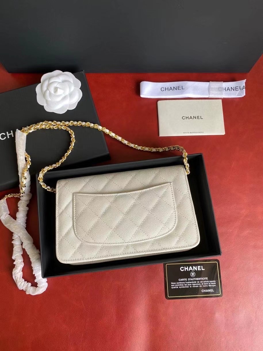 CHANEL經典菱格紋雙C粒面牛皮WOC 白色
