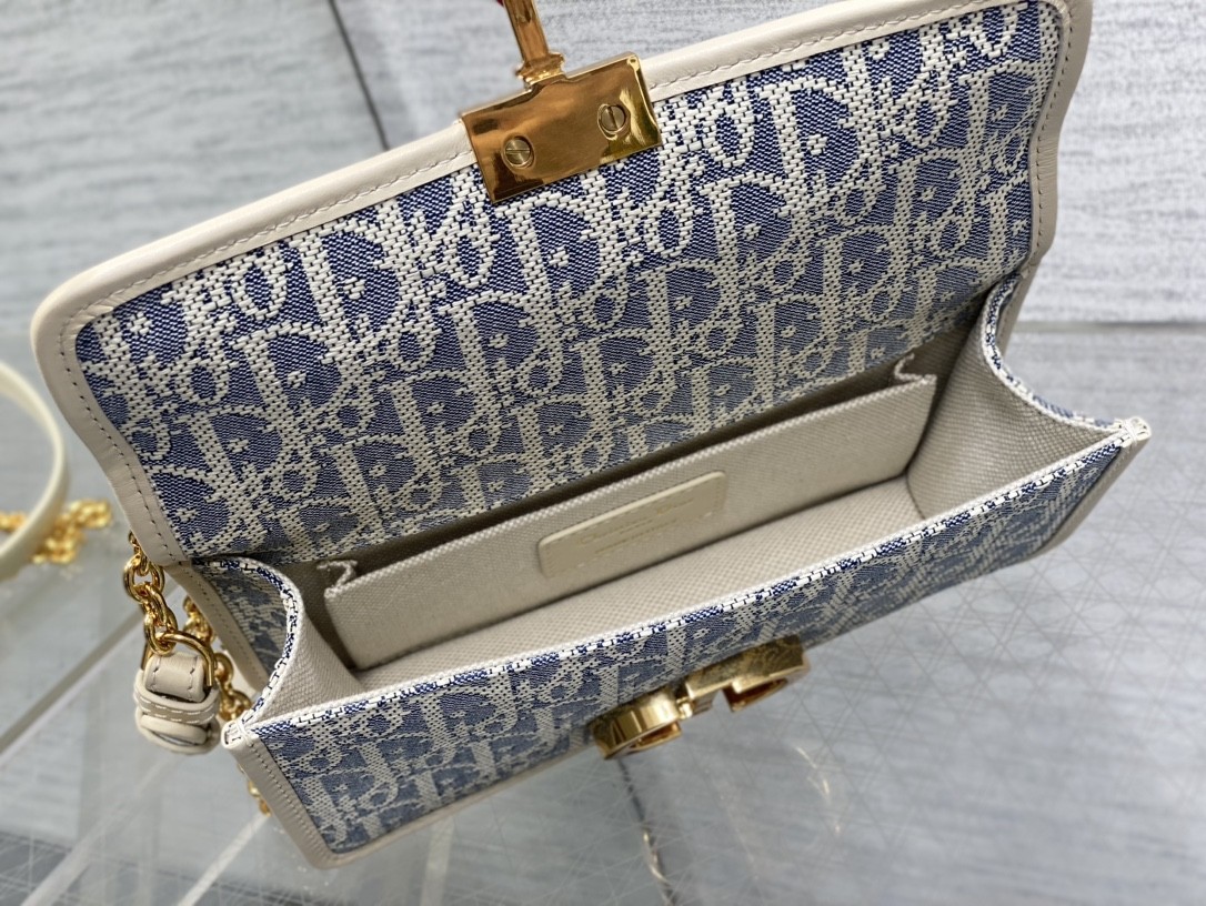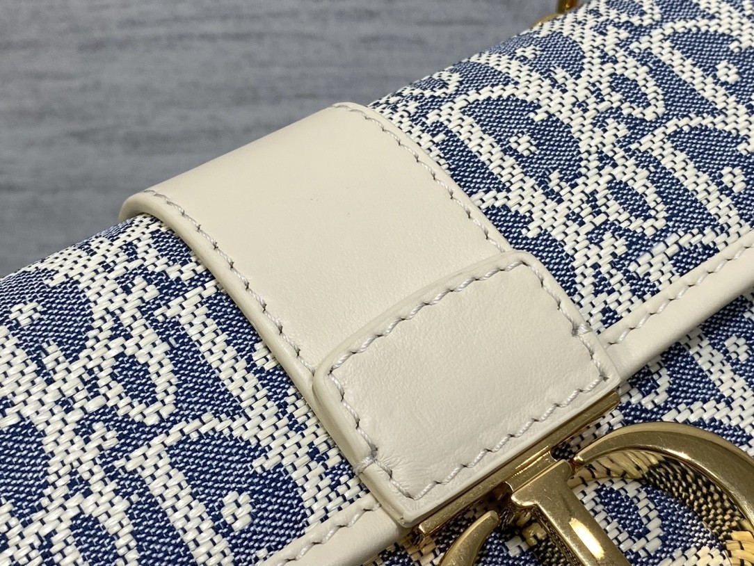 ChatGPT 說:【DIOR】30 Montaigne 藍白老花肩背包|Oblique 緹花 × CD 雙扣 × 鍊條皮帶設計