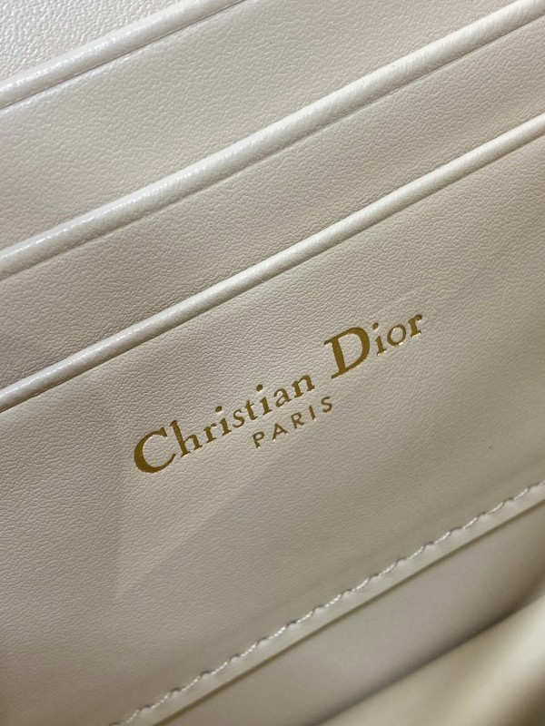 【DIOR】Caro 小羊皮鍊條包|奶油白 × 金扣 × 菱格縫線