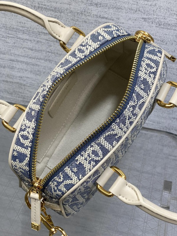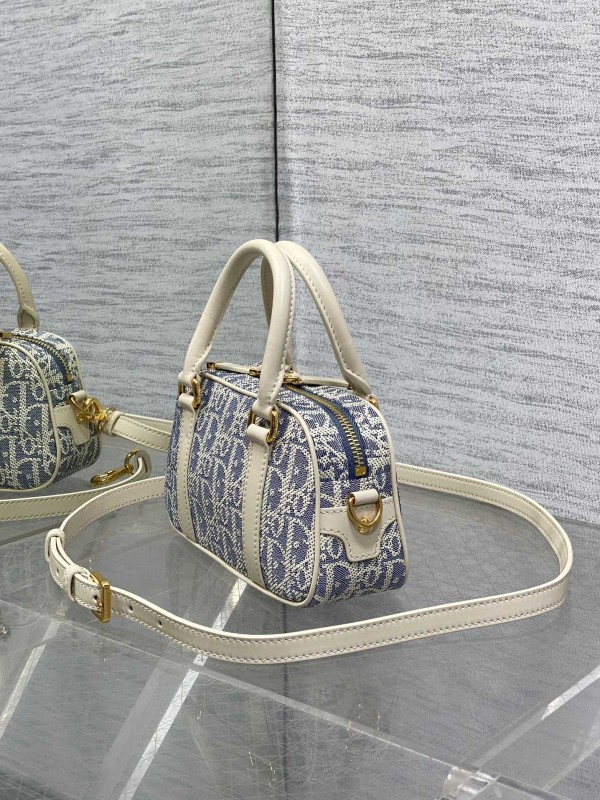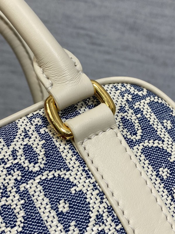 【DIOR】Oblique 老花波士頓包|奶白皮革拼接 × 經典緹花 × 金屬拉鍊設計