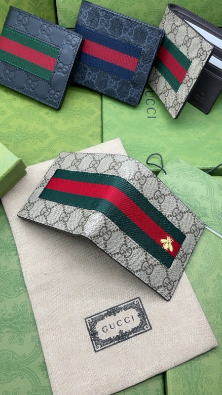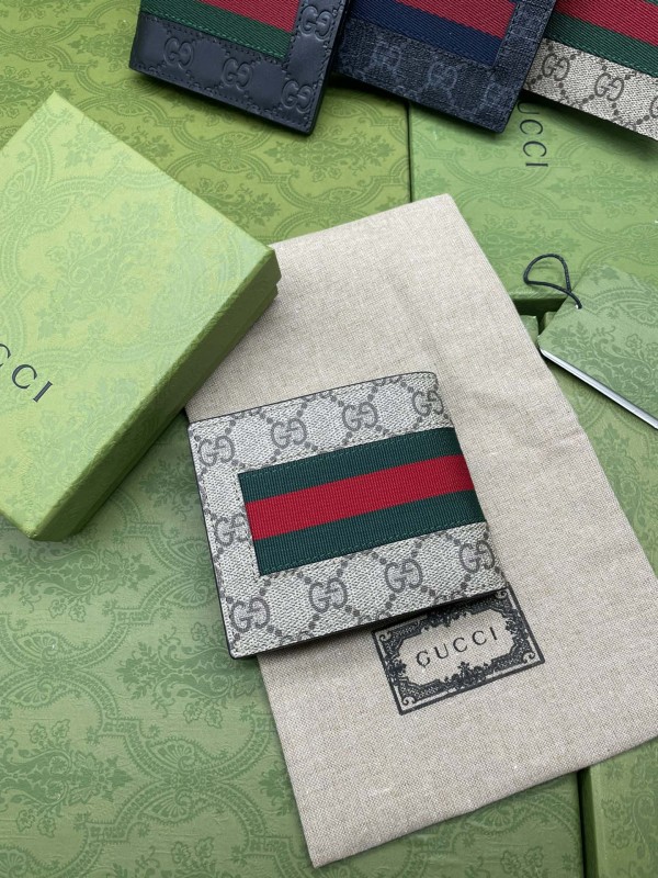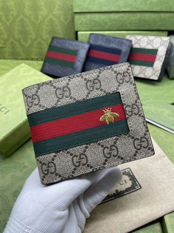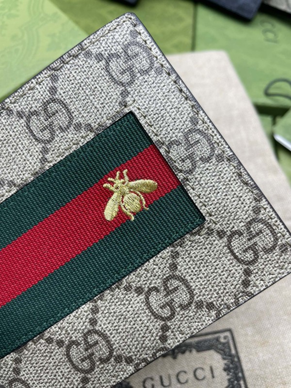 古馳(Gucci)GG Supreme蜜蜂圖案對開式短夾