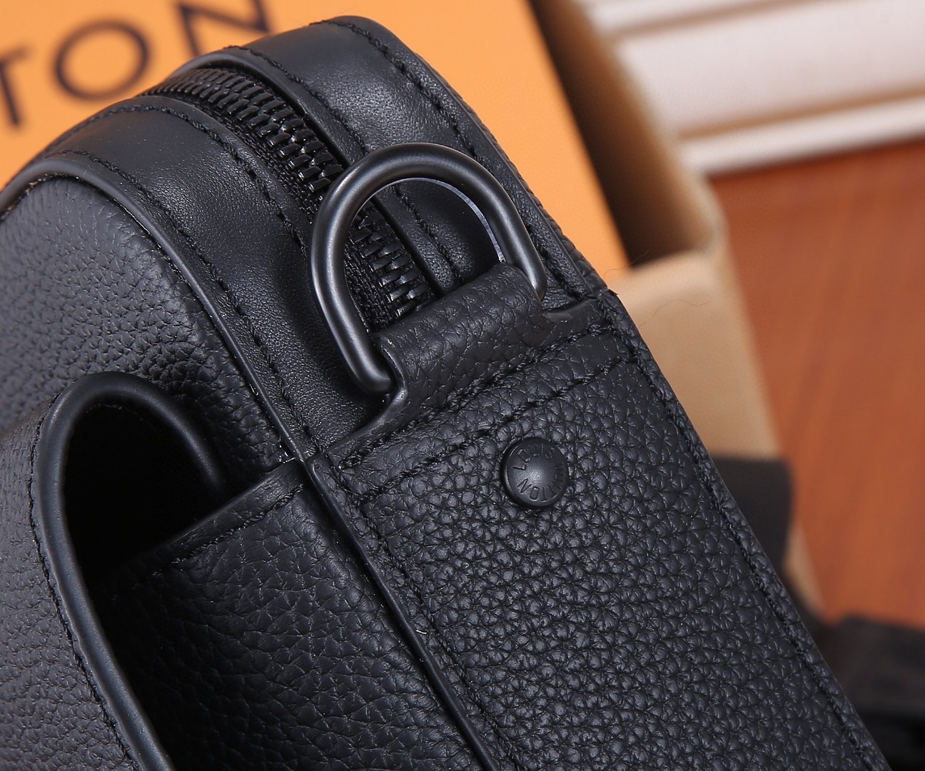 【LOUIS VUITTON 路易威登】Avenue 全黑壓紋皮革斜背包|極簡黑魂設計 × 立體LV標誌 × 都會型格男包