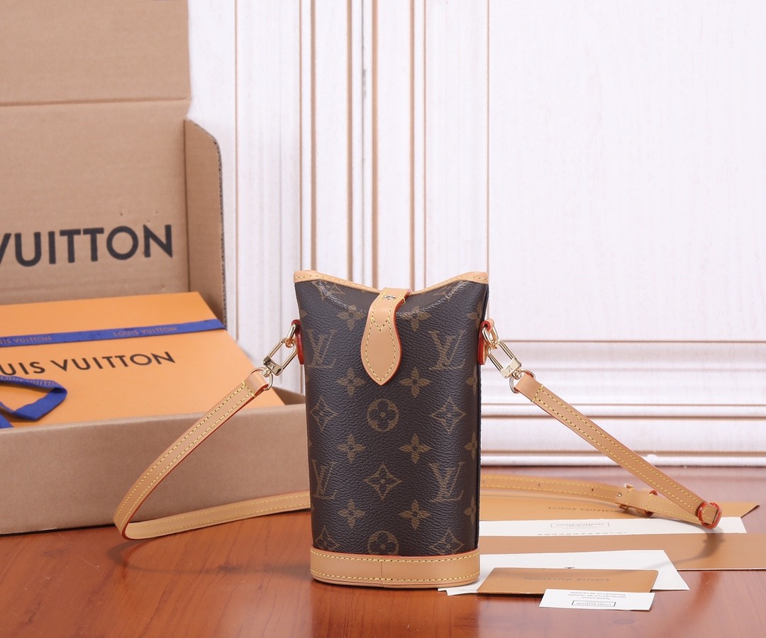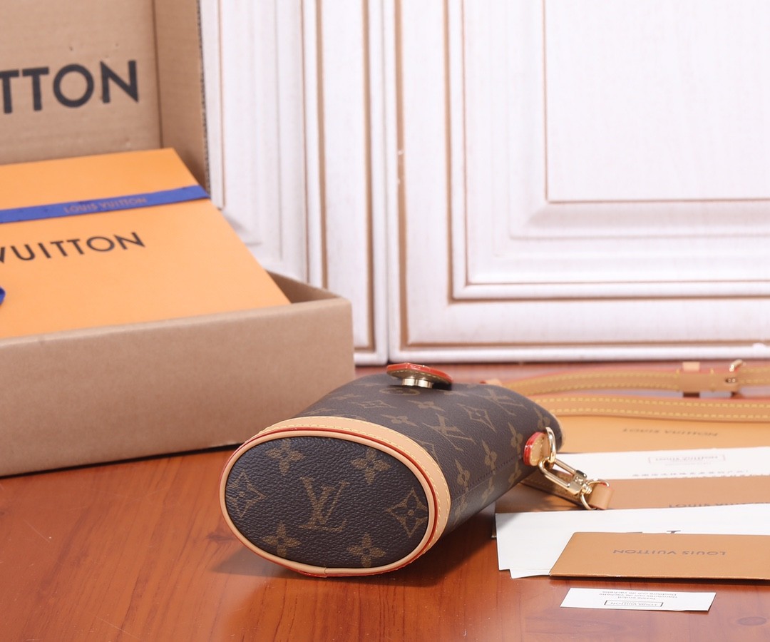 【LOUIS VUITTON 路易威登】Monogram 迷你水桶斜背包|經典老花 × 原皮拼接 × 咖啡杯造型