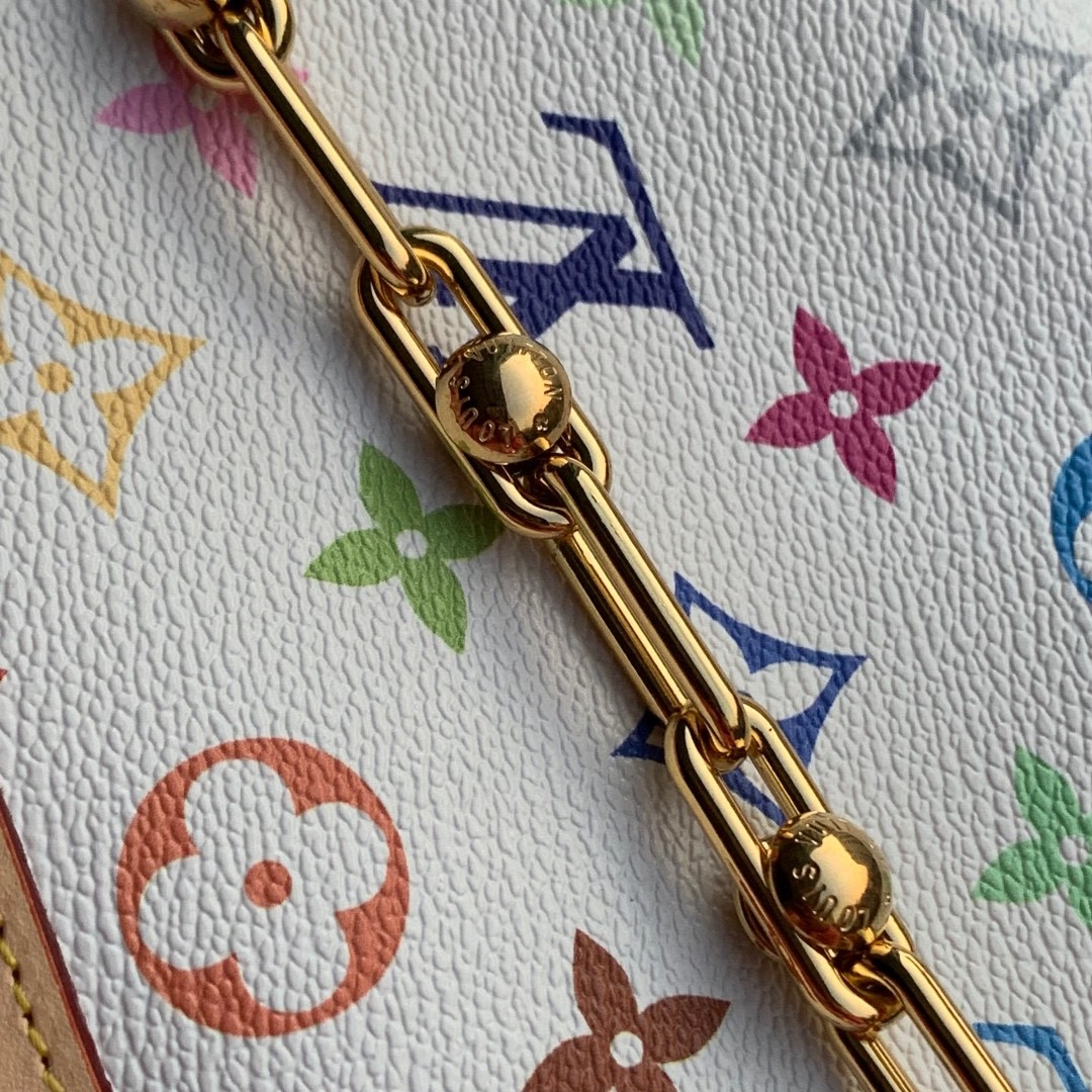 【LOUIS VUITTON × 村上隆】聯名設計 白底彩色 Monogram Pochette|金鍊肩帶 × 經典復刻 × 甜酷名媛包