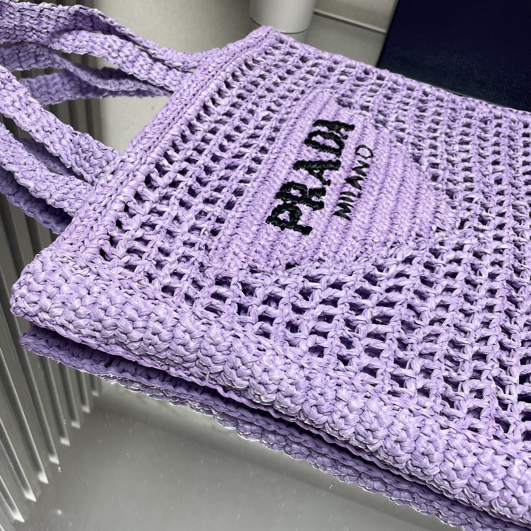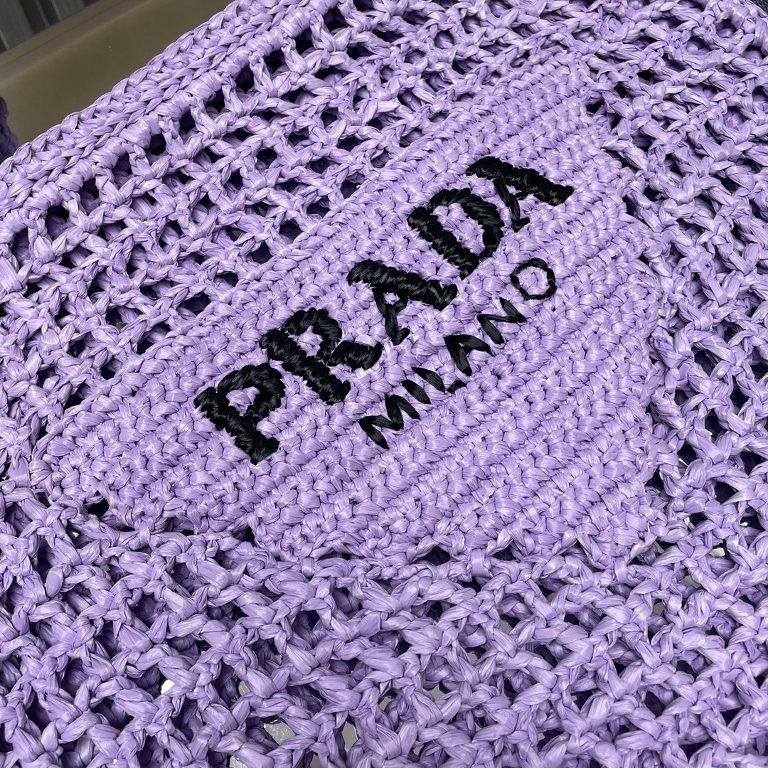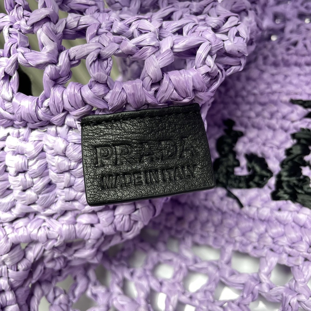 【PRADA 普拉達】Raffia 編織托特包|薰衣草紫 × 手工鏤空 × 夏日夢幻限定