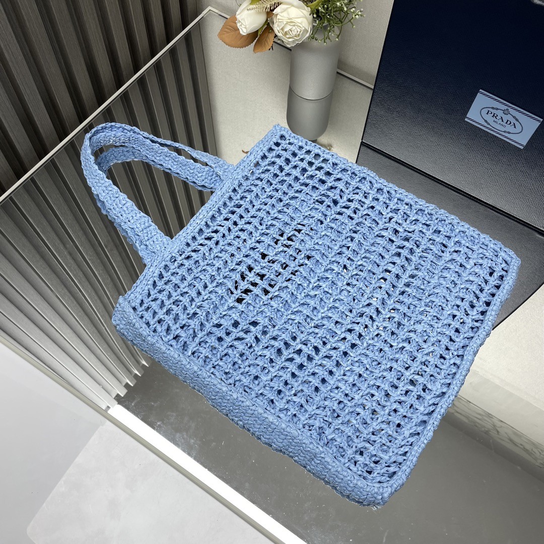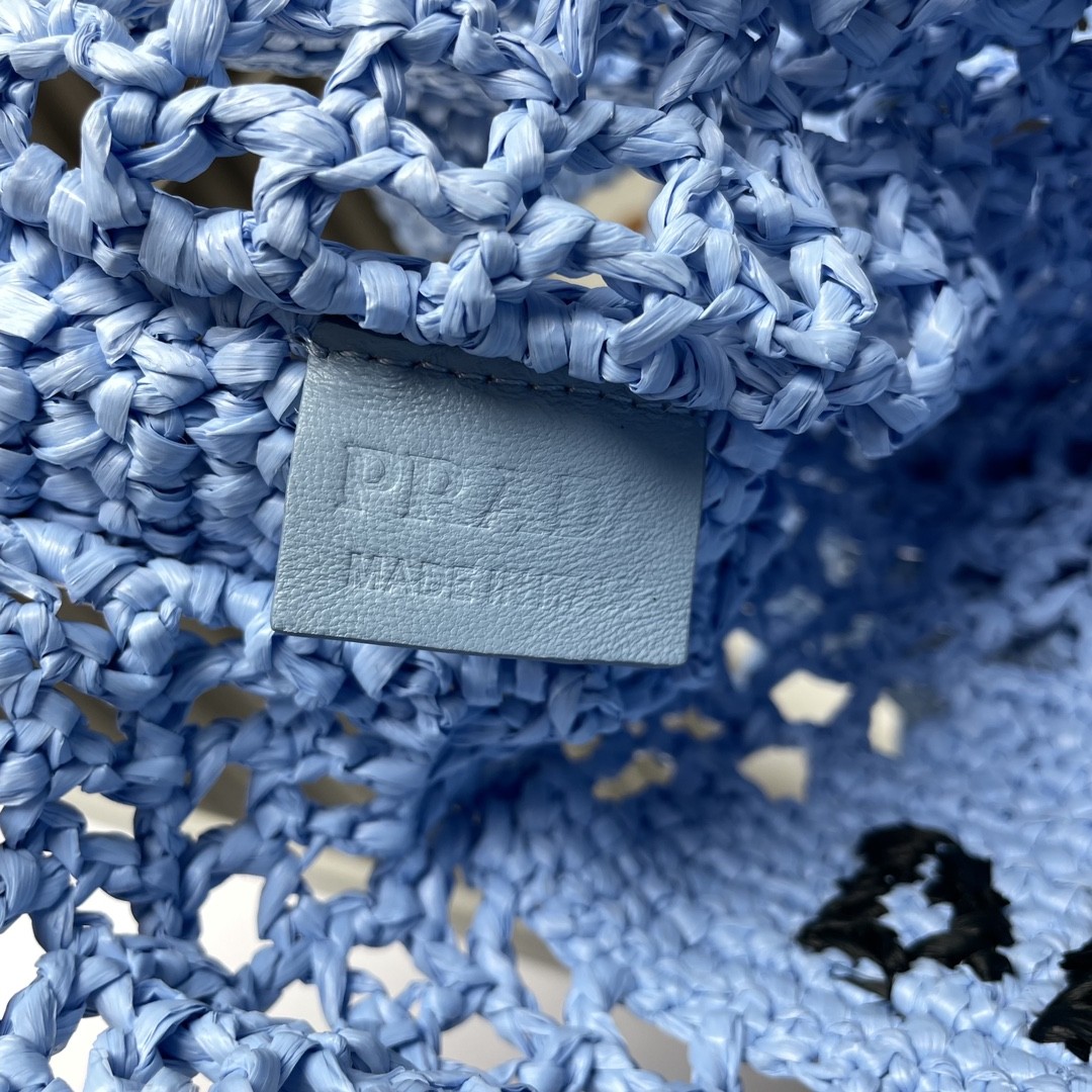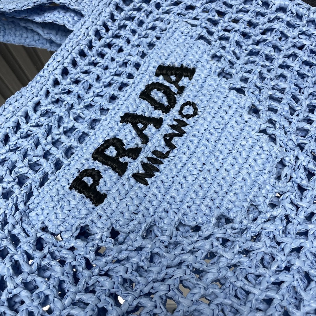 【PRADA 普拉達】Raffia 編織托特包|天空藍 × 黑色Logo × 清新夏日感