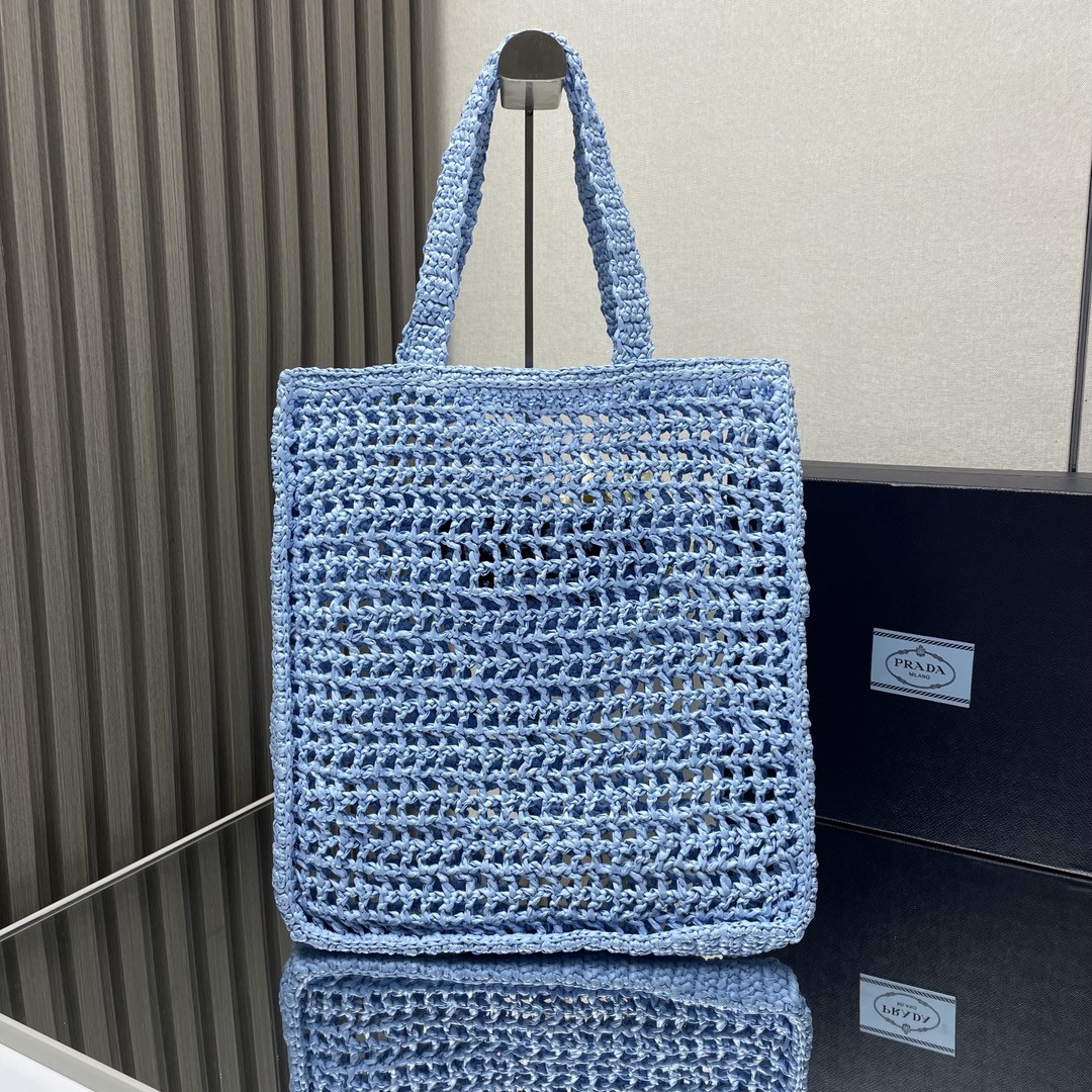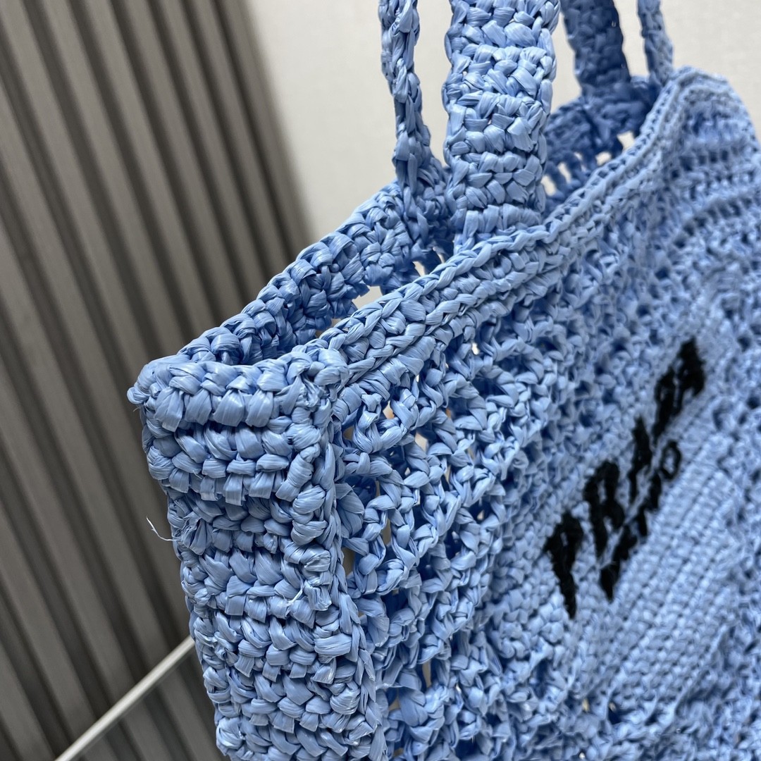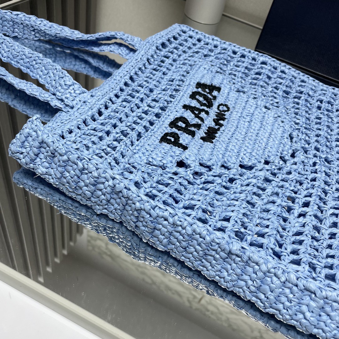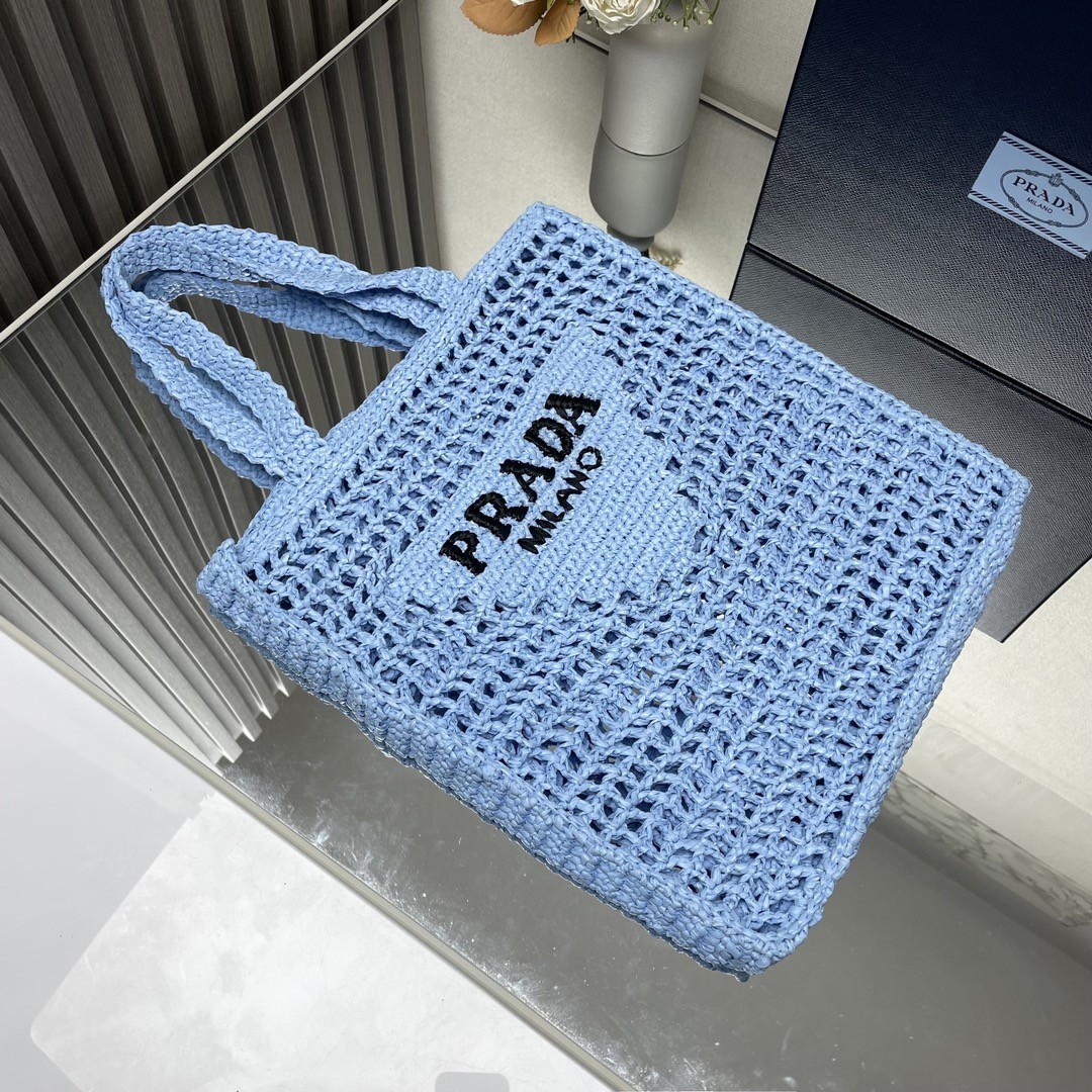 【PRADA 普拉達】Raffia 編織托特包|天空藍 × 黑色Logo × 清新夏日感