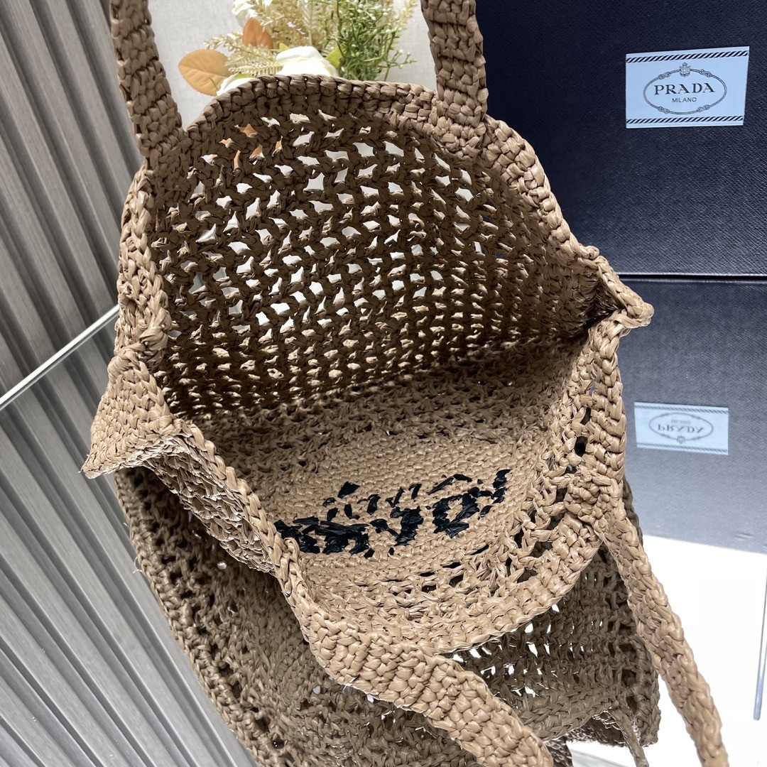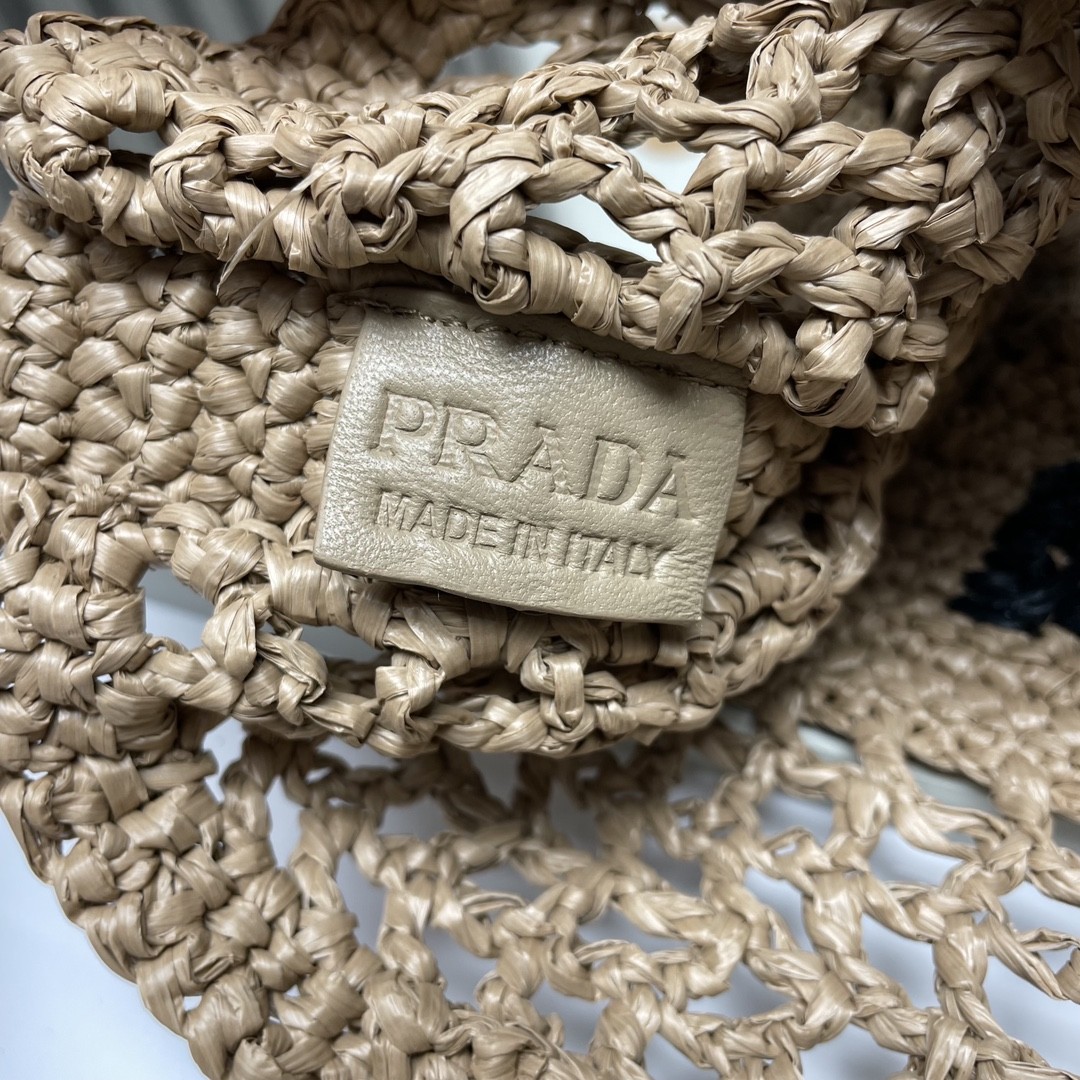 【PRADA 普拉達】Raffia 編織托特包|煙燻棕 × 手工鏤空 × 海島度假風