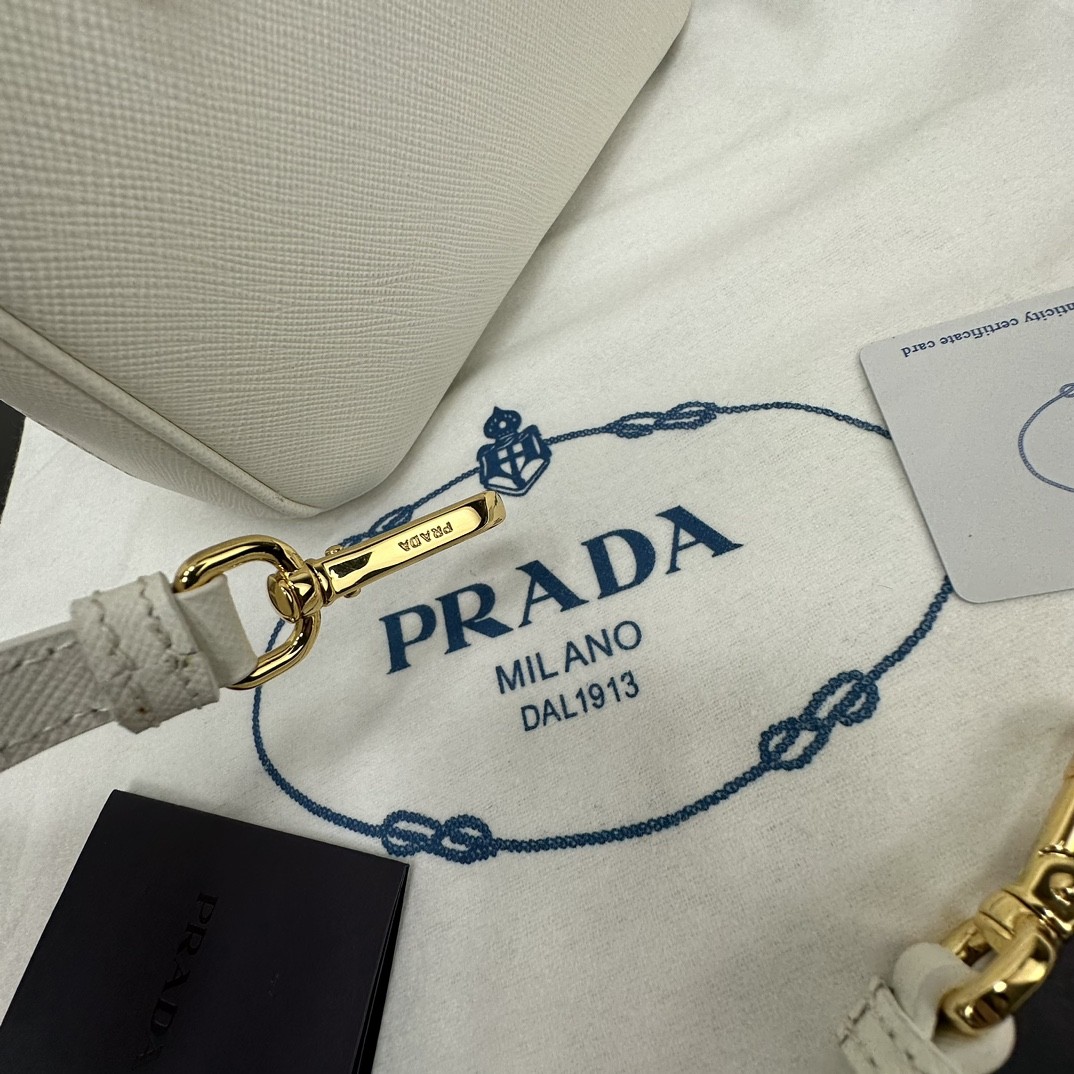 【PRADA】Galleria Mini Saffiano 手提包|象牙白 × 金扣 × 雙層拉鍊