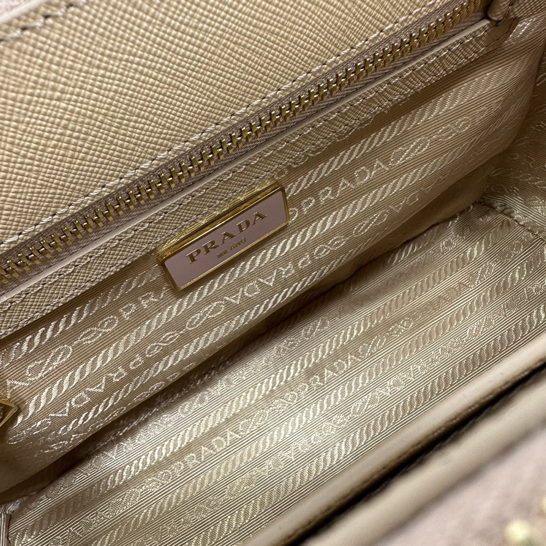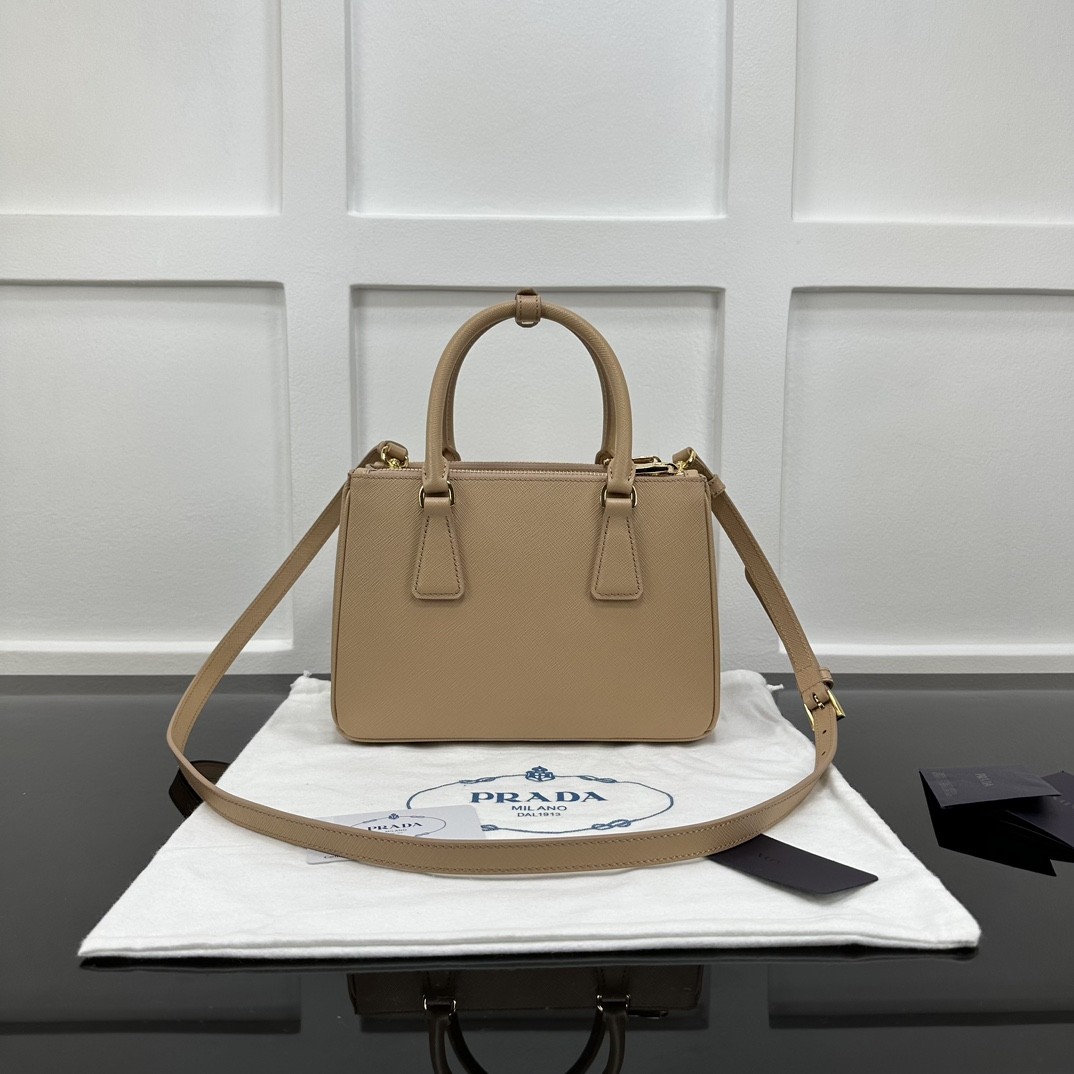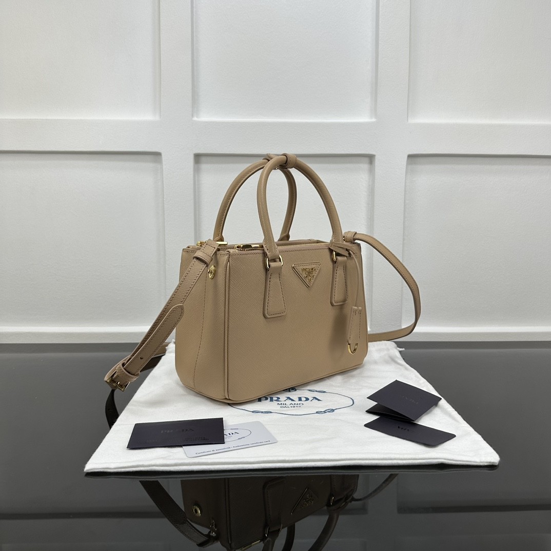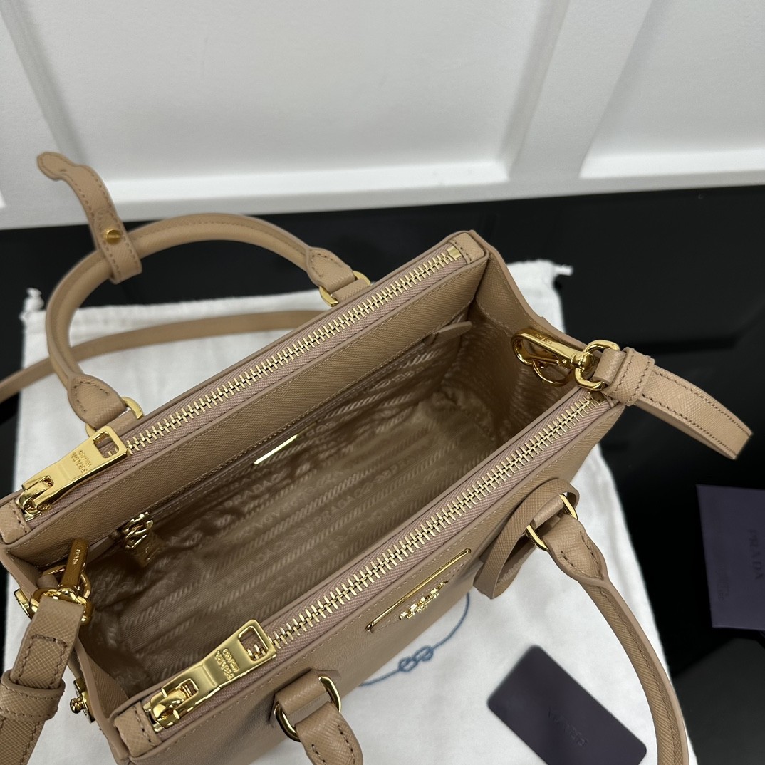 【PRADA】Galleria Small Saffiano 手提包|奶茶米 × 金扣 × 雙層拉鍊