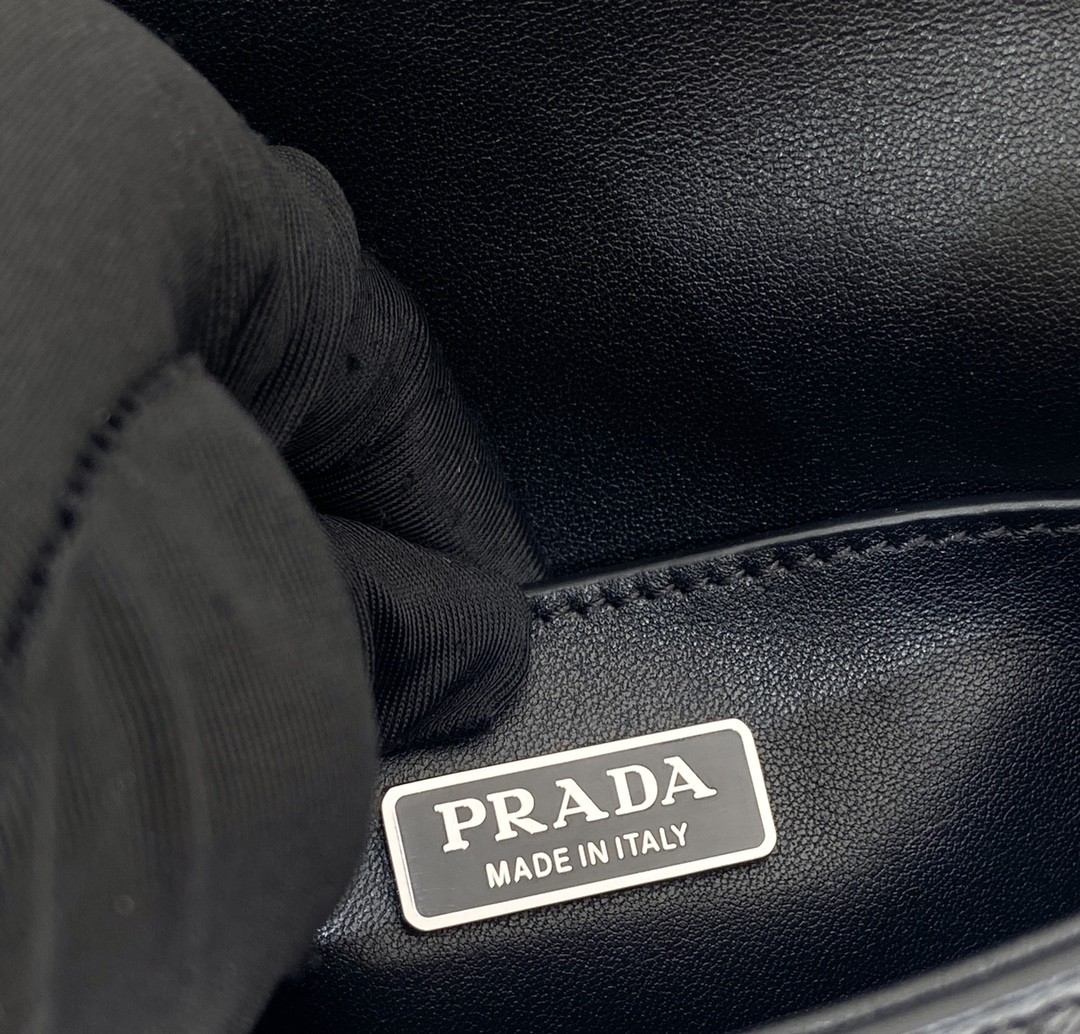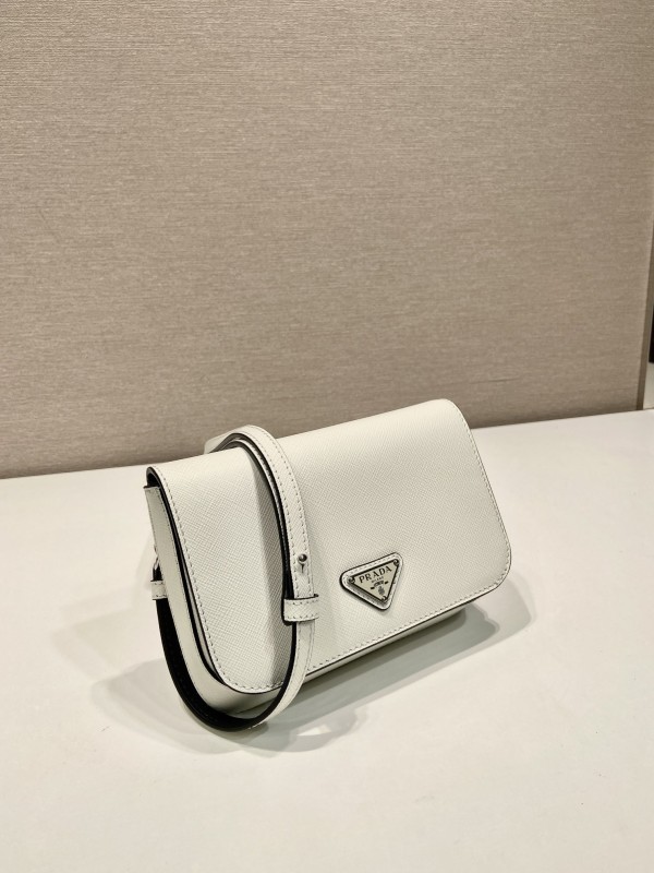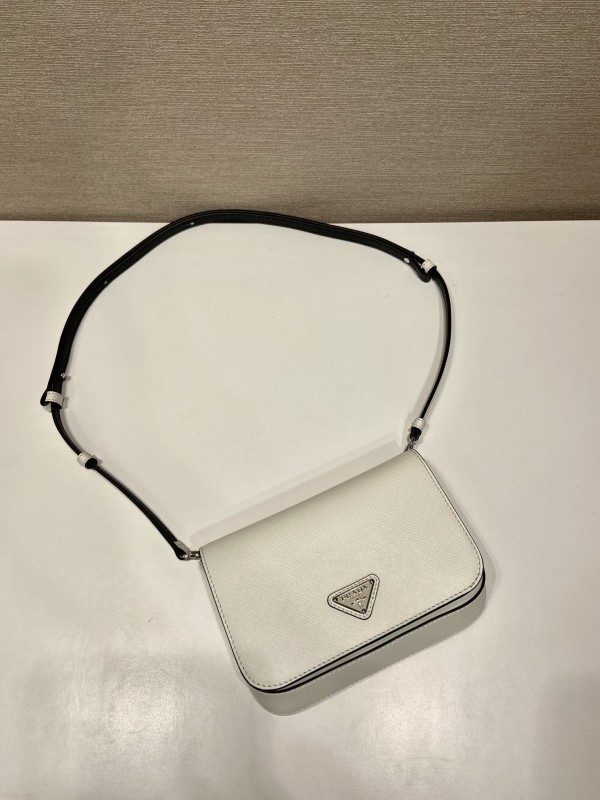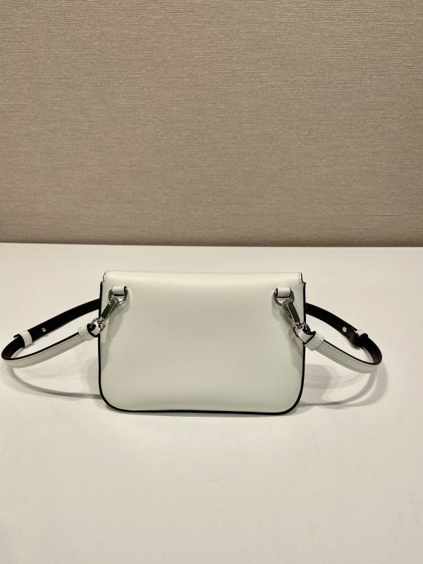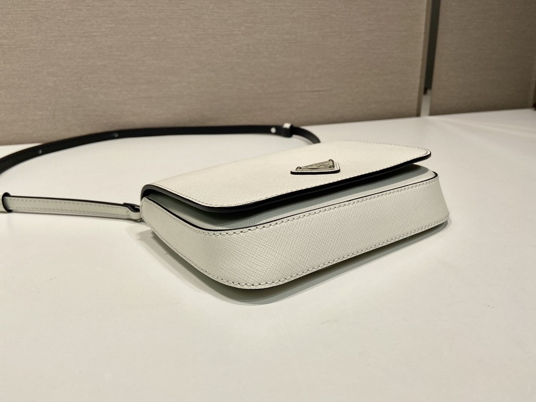 【PRADA】Saffiano Leather Crossbody|白色小牛皮 × 三角標誌 × 黑邊細節