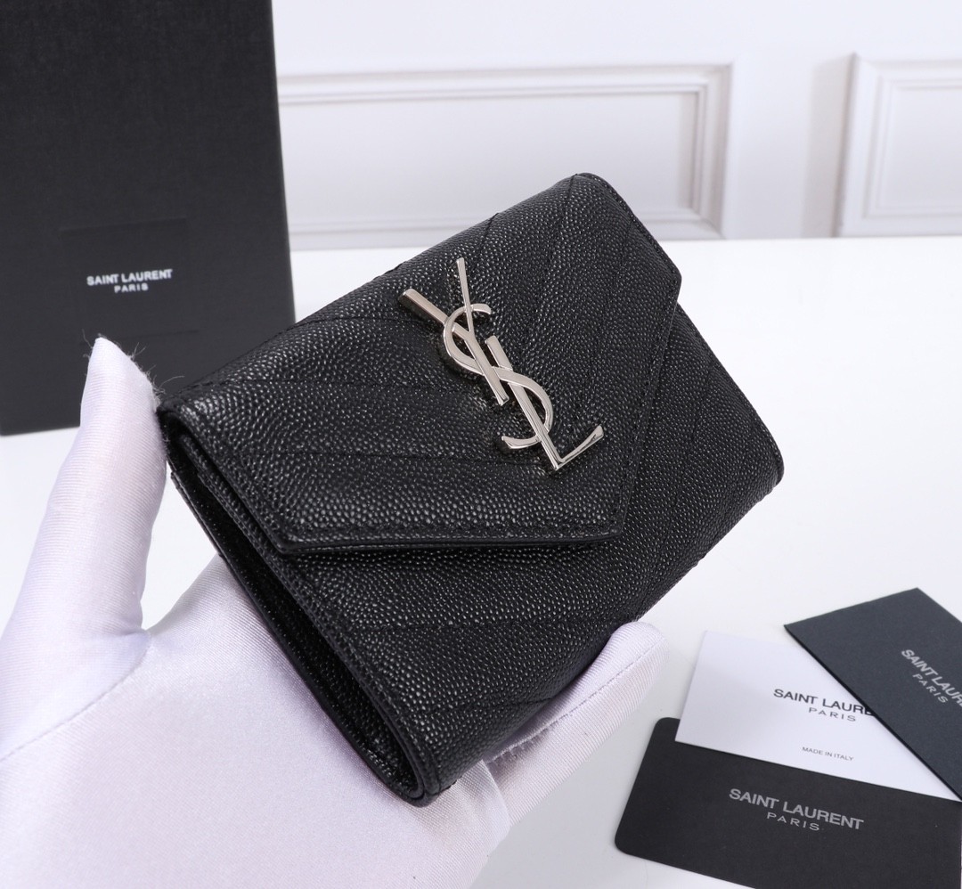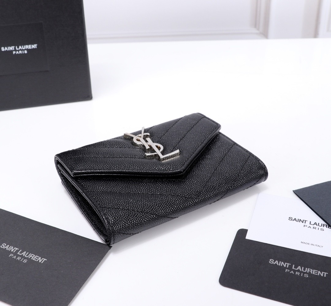 Saint Laurent YSL Monogram Envelope Wallet 經典信封短夾(黑銀款)