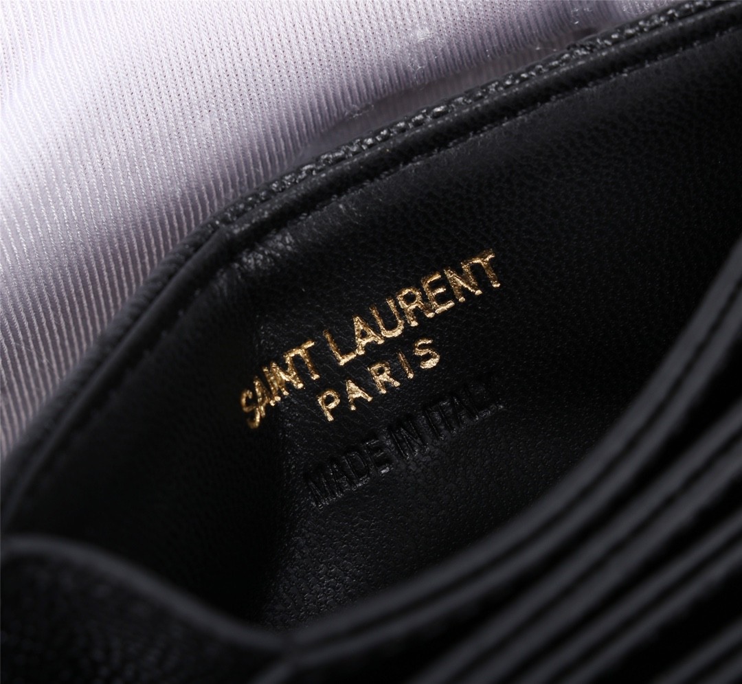 【Saint Laurent 聖羅蘭】風琴式短夾(黑金款)|荔枝壓紋皮革、金色YSL字母Logo、多層收納設計